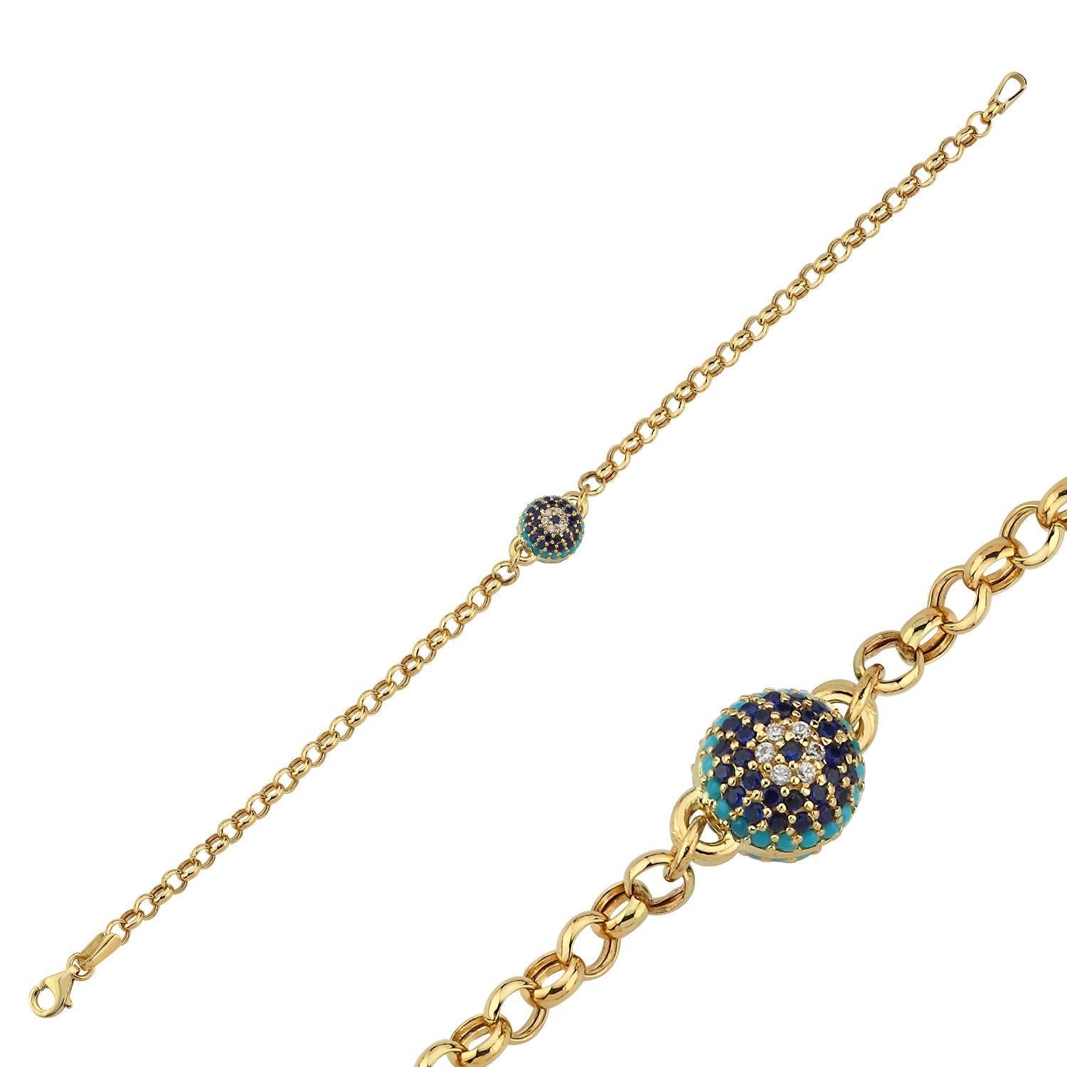 A timeless symbol of protection and style, this 14K Gold Stone Evil Eye Bracelet is a must-have for your jewelry collection. Featuring a mesmerizing evil eye centerpiece adorned with sparkling stones, it’s designed to bring positivity and elegance to your everyday look.