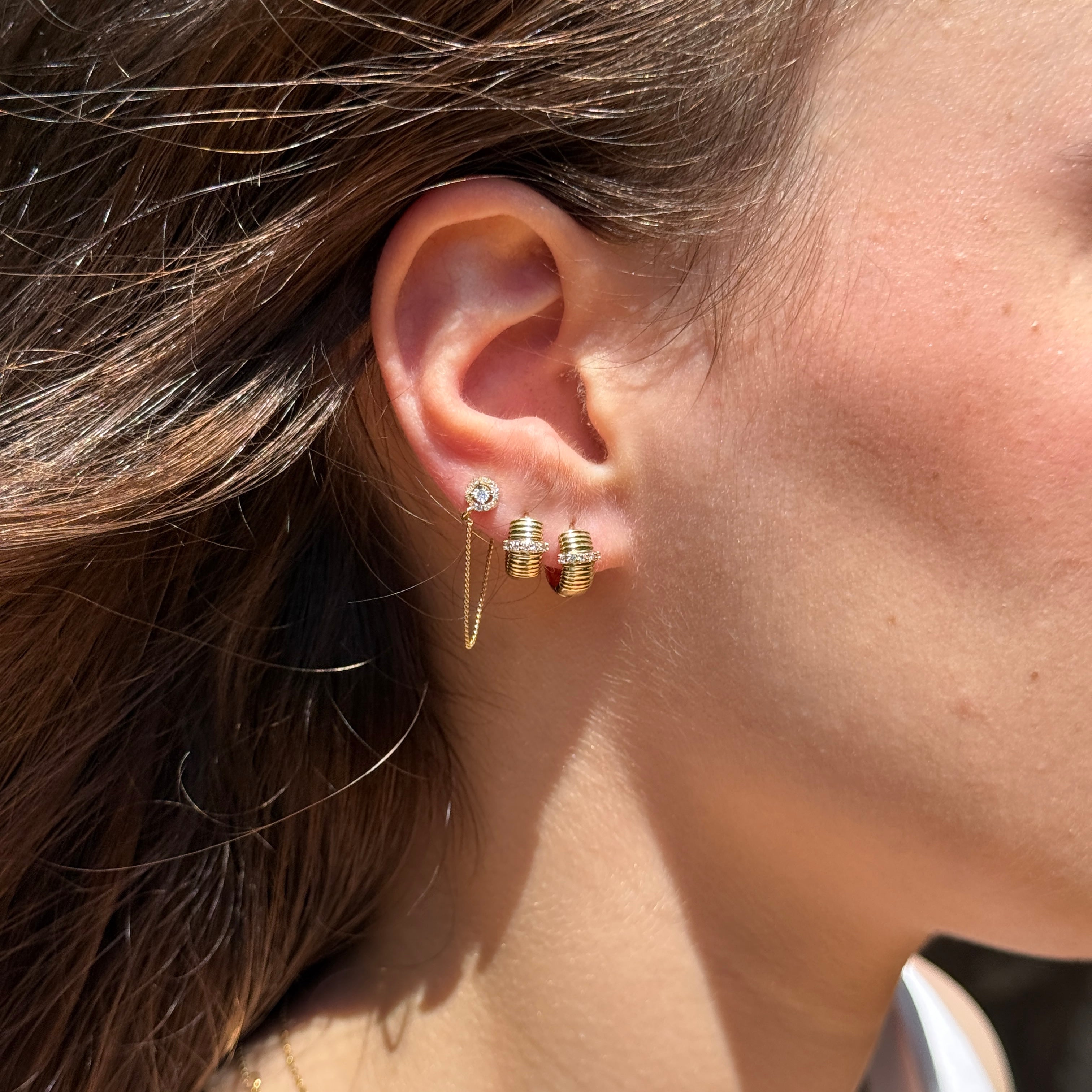 14K Gold Bezel-Set Diamond Chain Stud Earrings