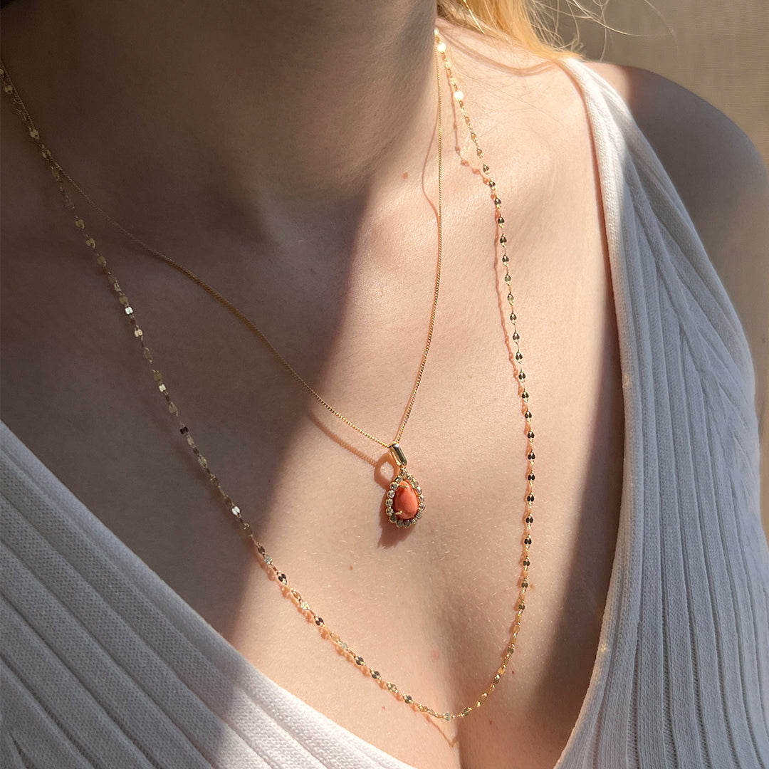 Hems Jewellery 14K Diamond Drop Compressed Sequin Coral Necklace