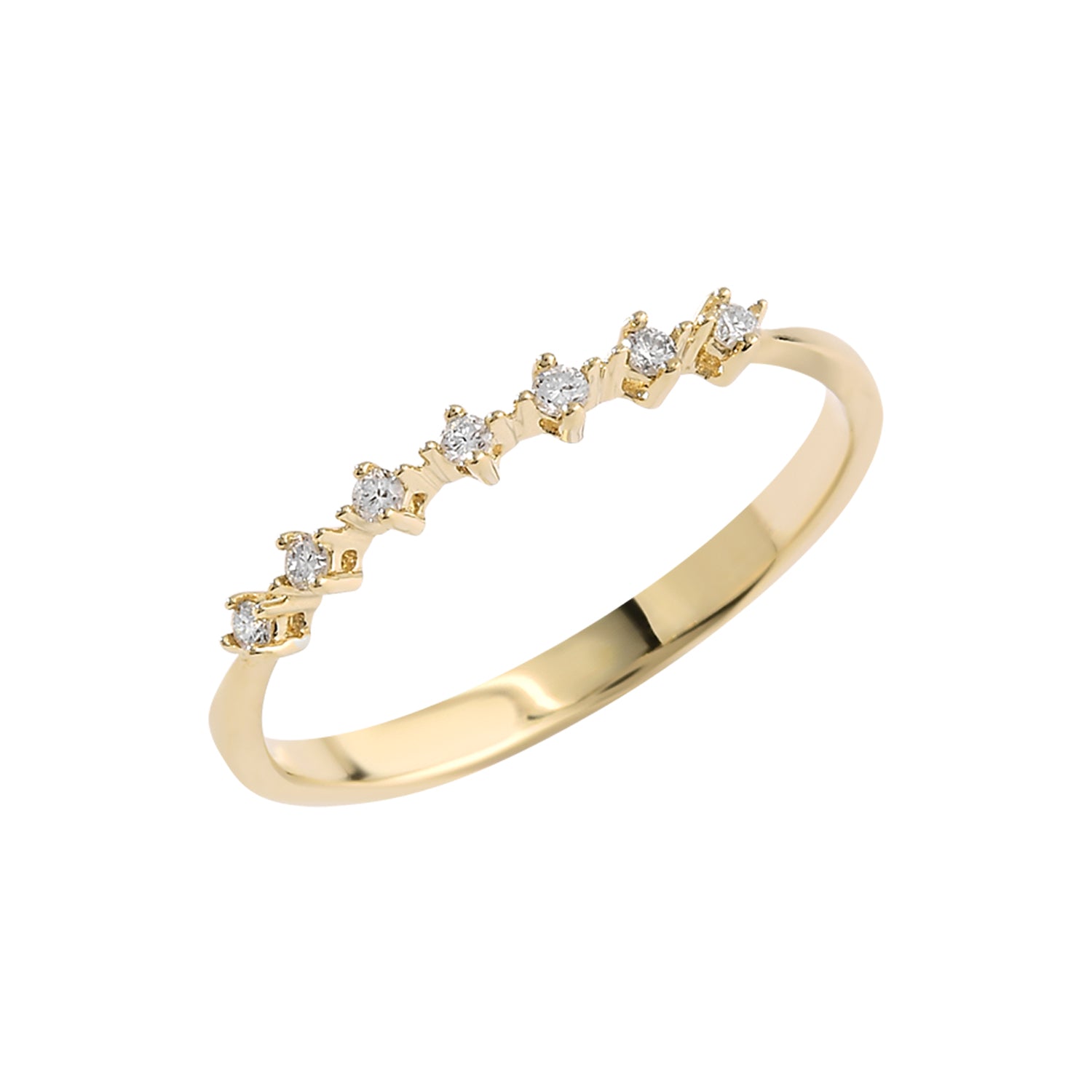 Capture graceful sparkle with this 14K gold diamond dainty seven stone ring. Featuring seven round-cut diamonds in a refined, delicate setting, this ring adds elegant brilliance to your everyday or stacked style.