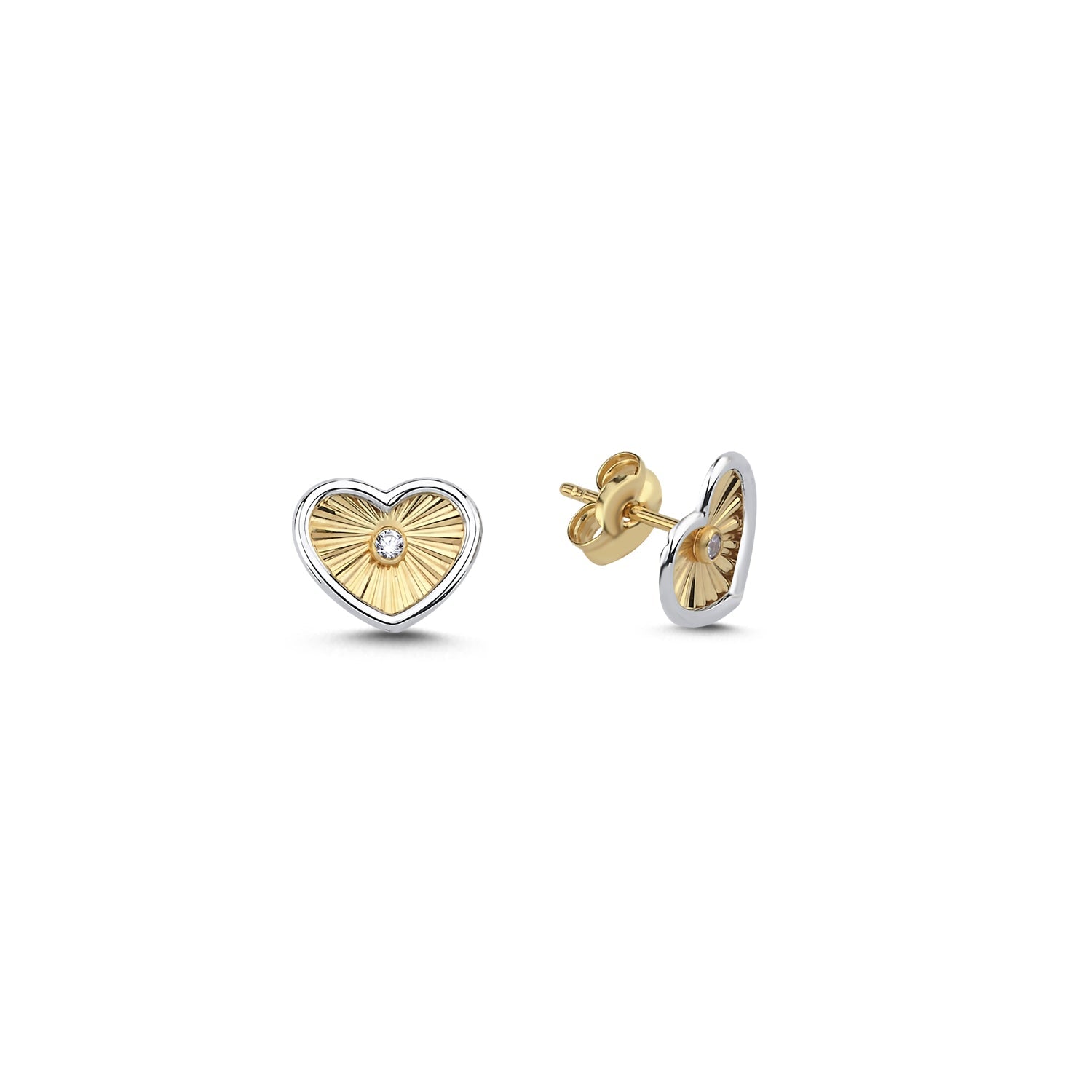 14K Gold Sunburst Heart Diamond Stud Earrings