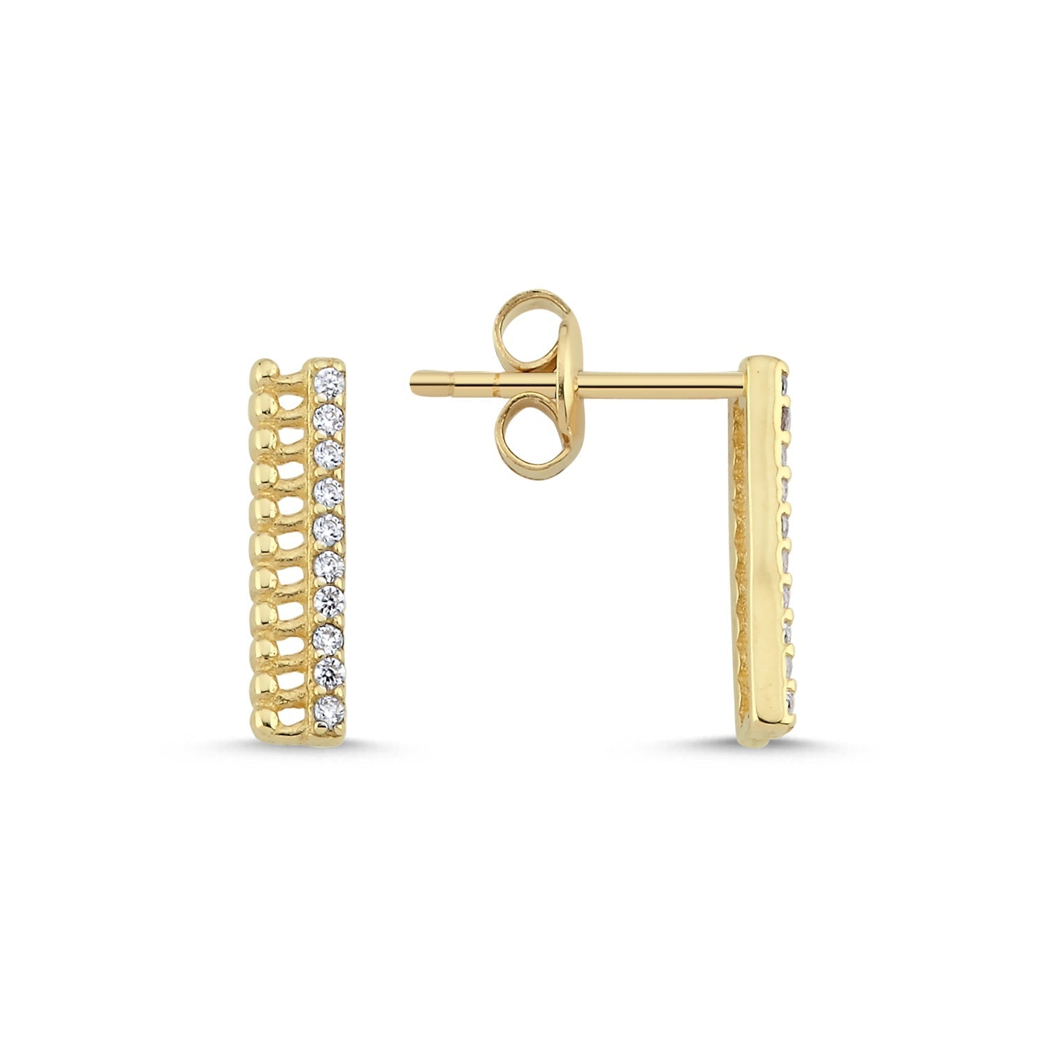 Add modern elegance to your collection with these 14K Gold Ladder Bar Stud Earrings. Their sleek ladder-inspired design creates a contemporary yet refined look, perfect for everyday wear or a stylish evening statement.