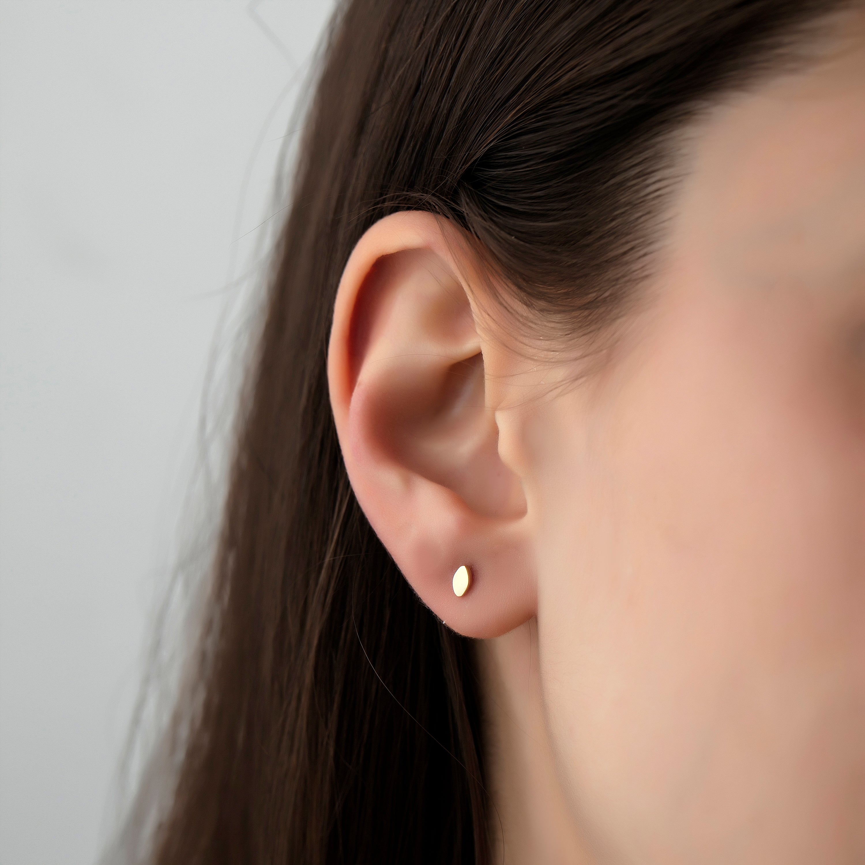 14K Gold Mini Ellipse Marquise Stud Earrings