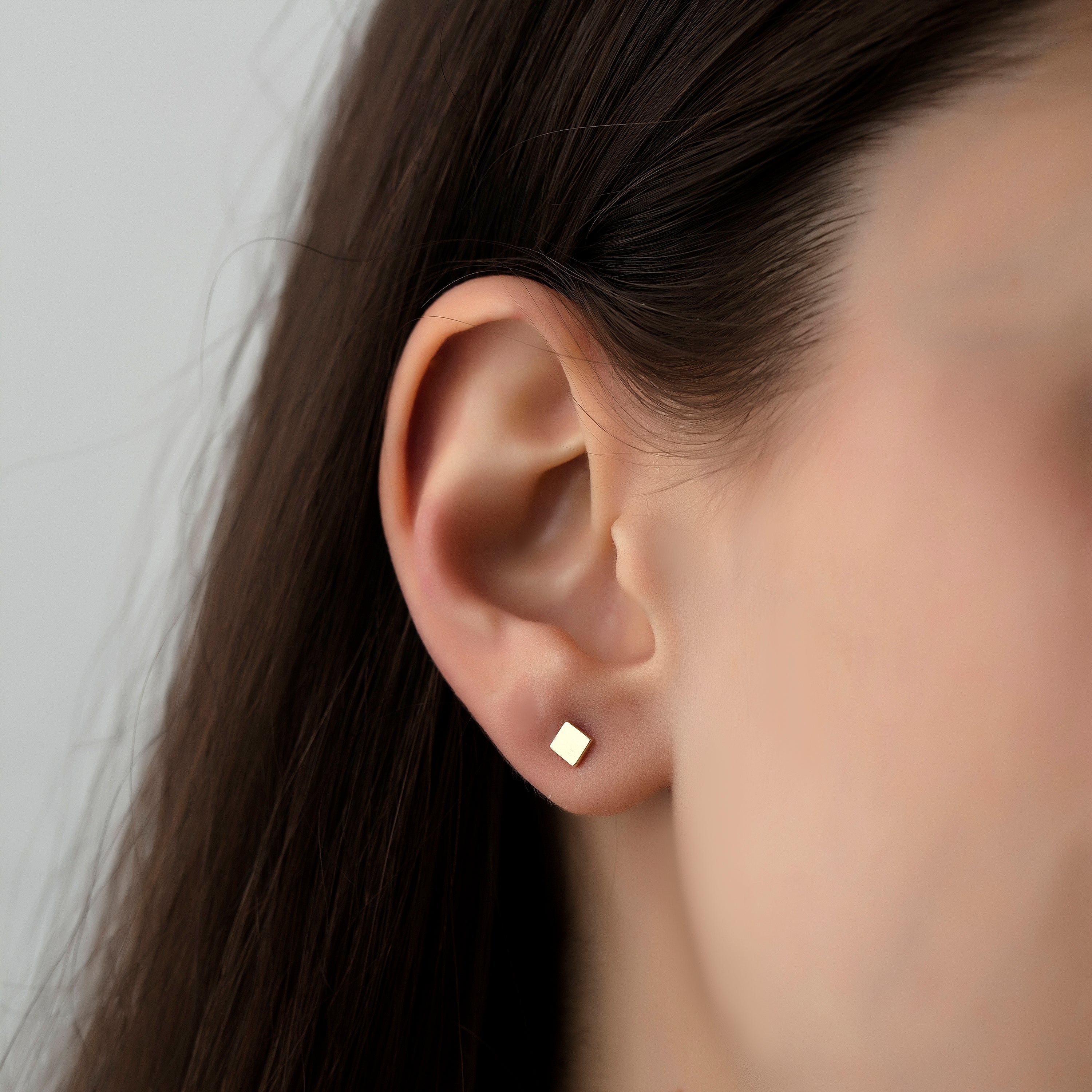 14K Gold Minimalist Square Stud Earrings