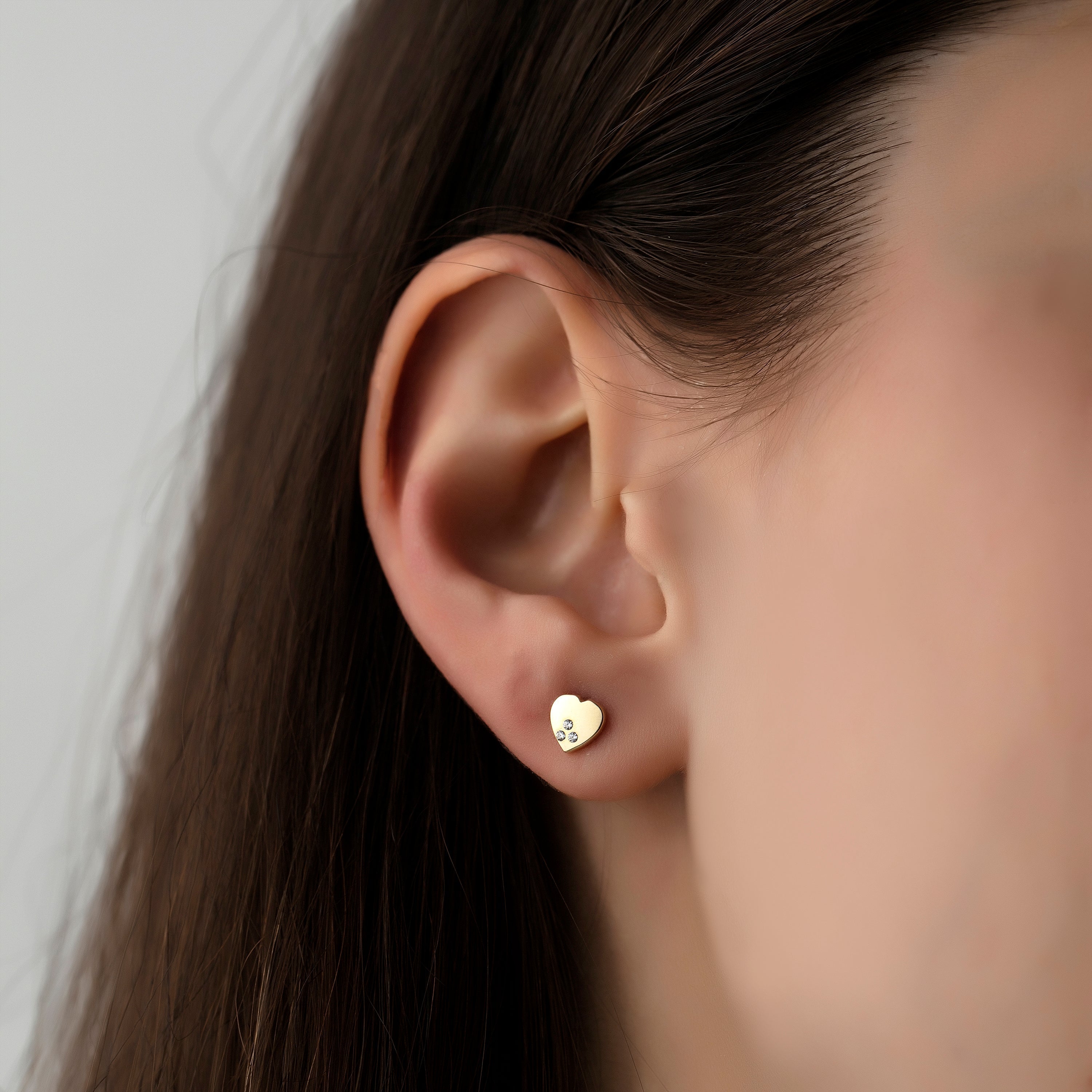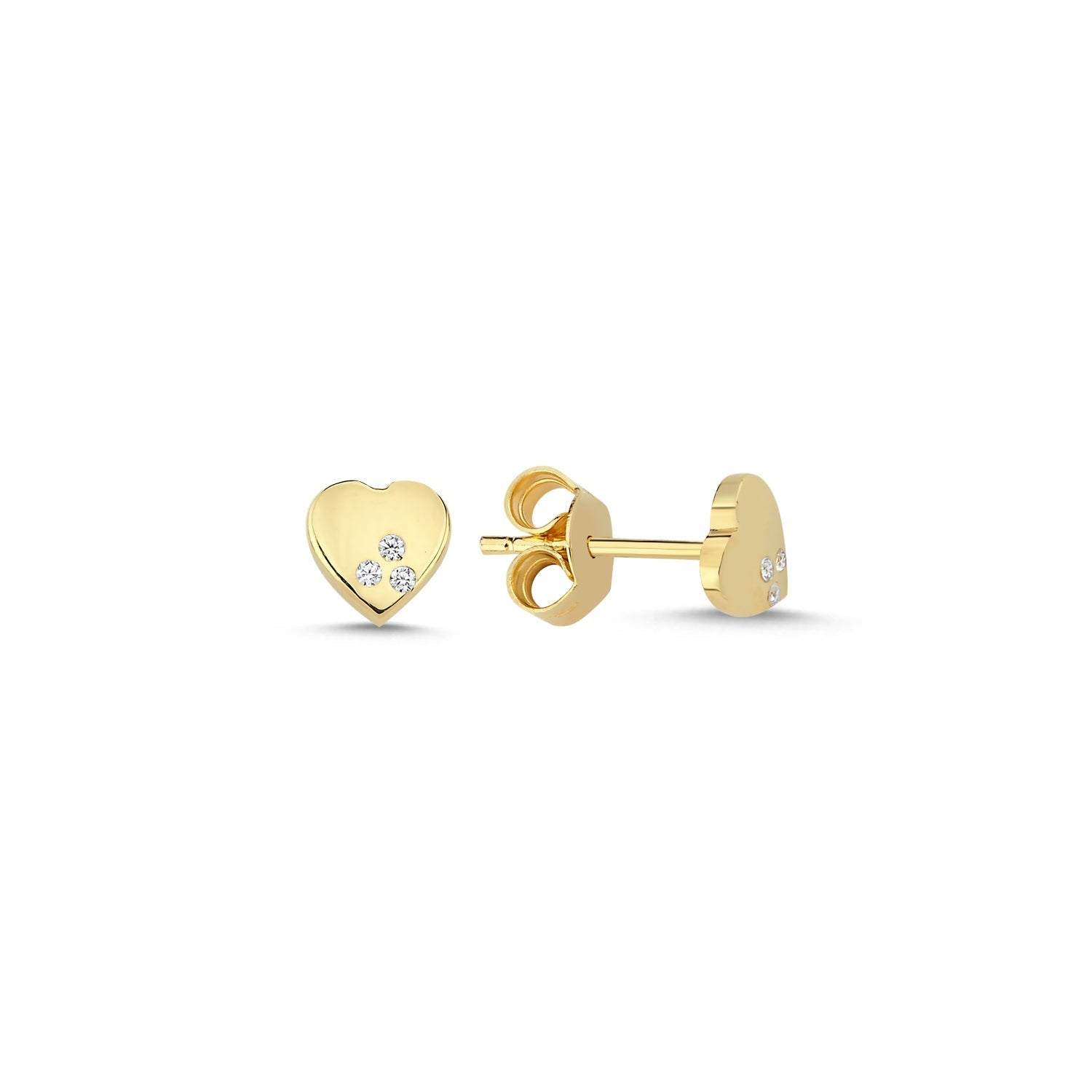 Sweet and timeless, these 14K Gold Heart Trio Stone Stud Earrings capture the essence of romance. Crafted from polished 14K gold, each heart features a delicate trio of sparkling stones for a subtle yet eye-catching look.