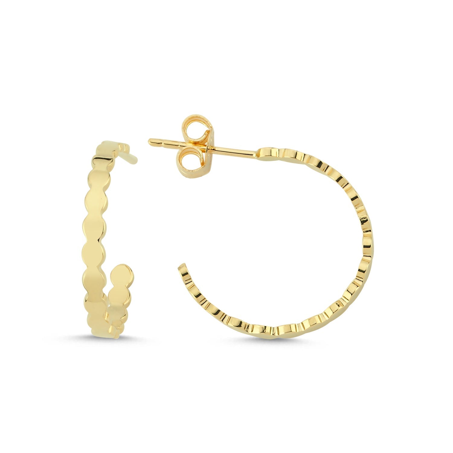 14K Gold Textured Disc Hoop Stud Earrings