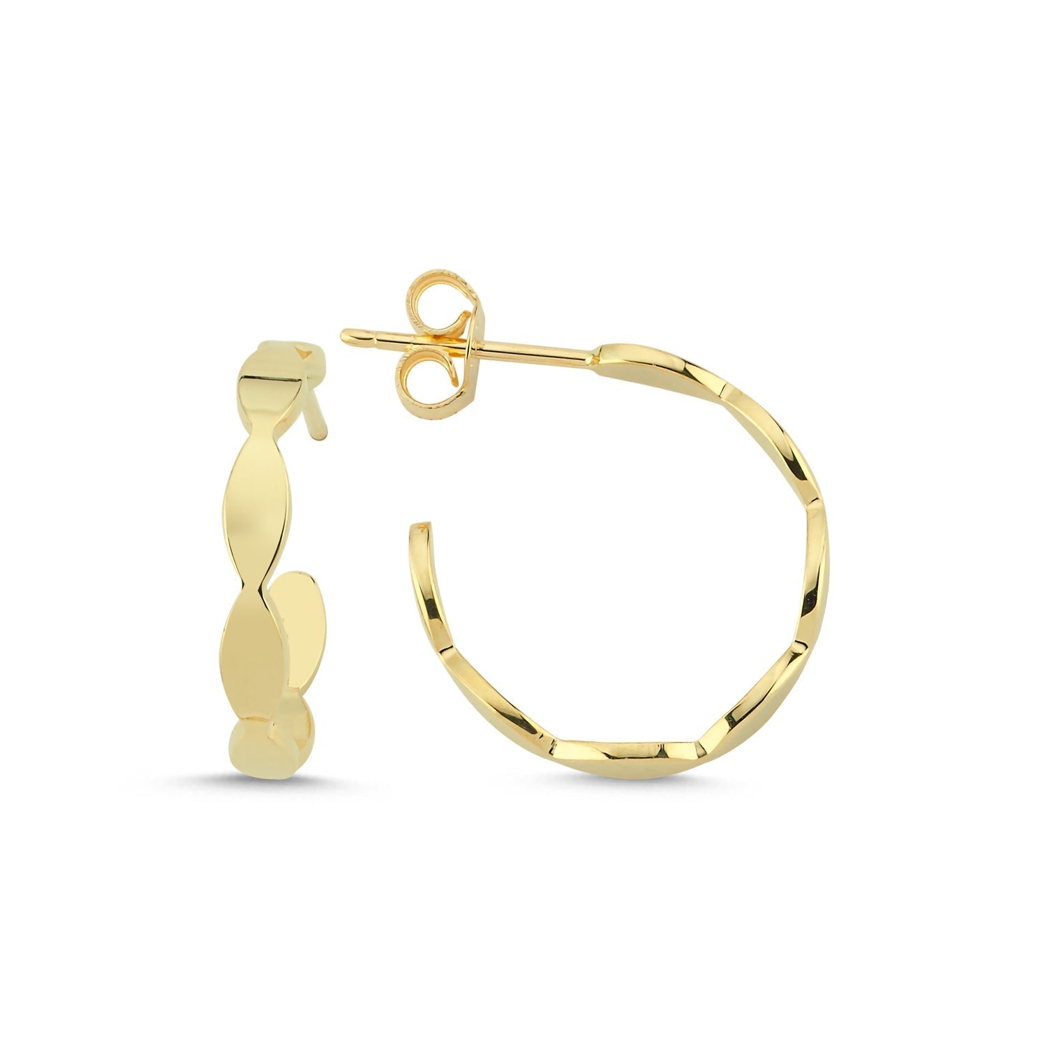 Enhance your style with these 14K Gold Wavy Open Hoop Earrings. The polished gold surface and wavy design create a fluid, modern look that reflects light beautifully. Perfect for both casual and formal occasions, these hoops add a touch of understated elegance.