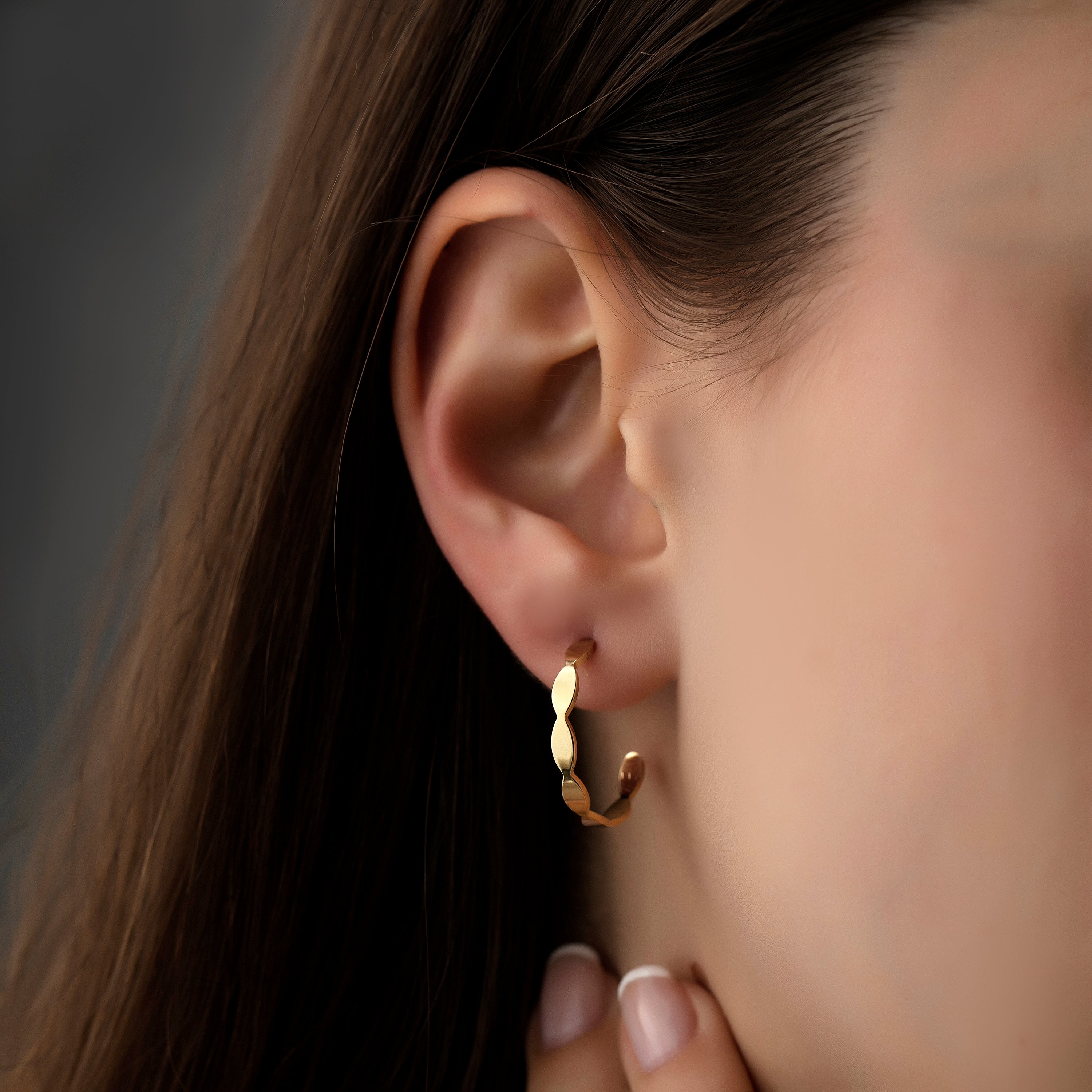 Add a sophisticated twist to your collection with these effortlessly chic wavy hoops.