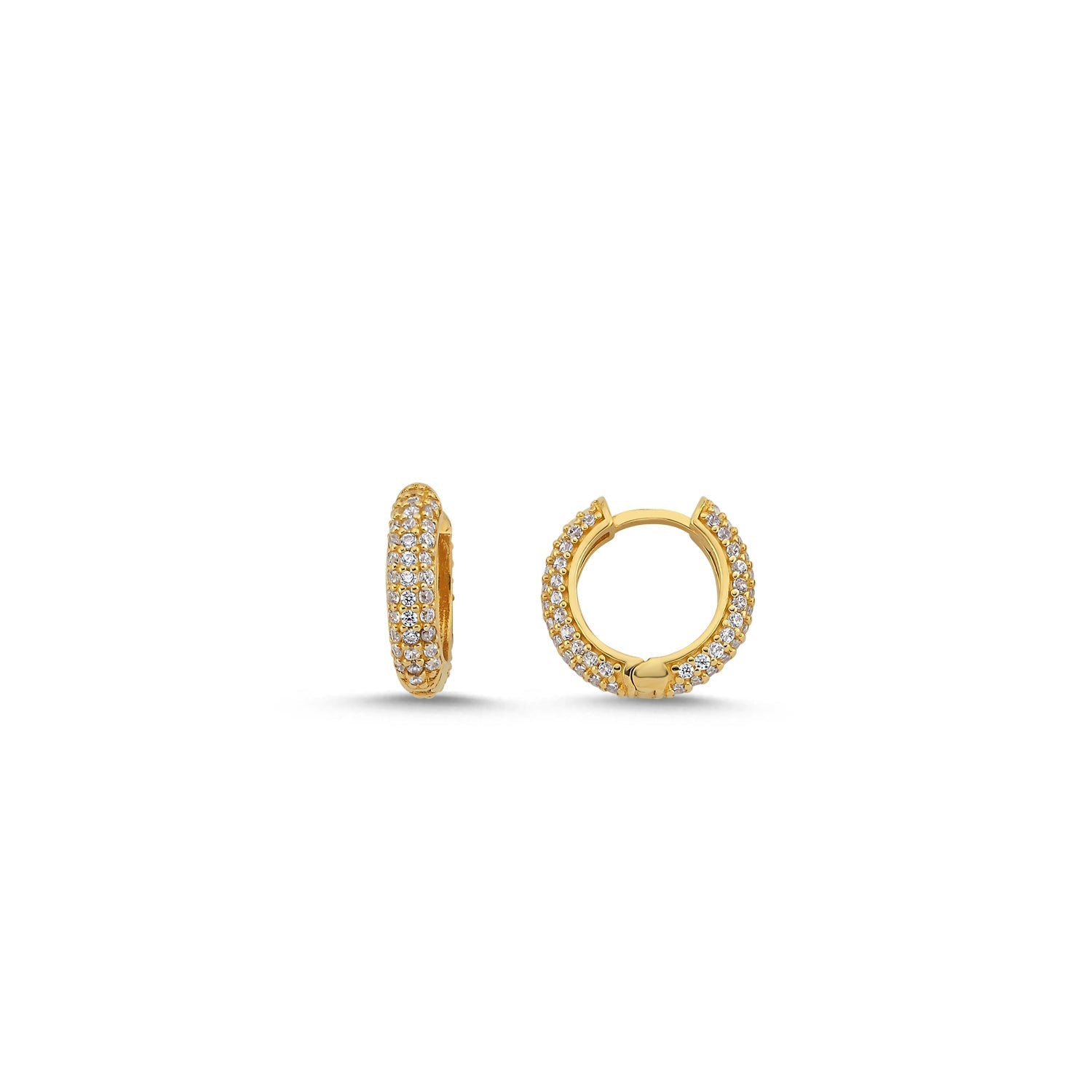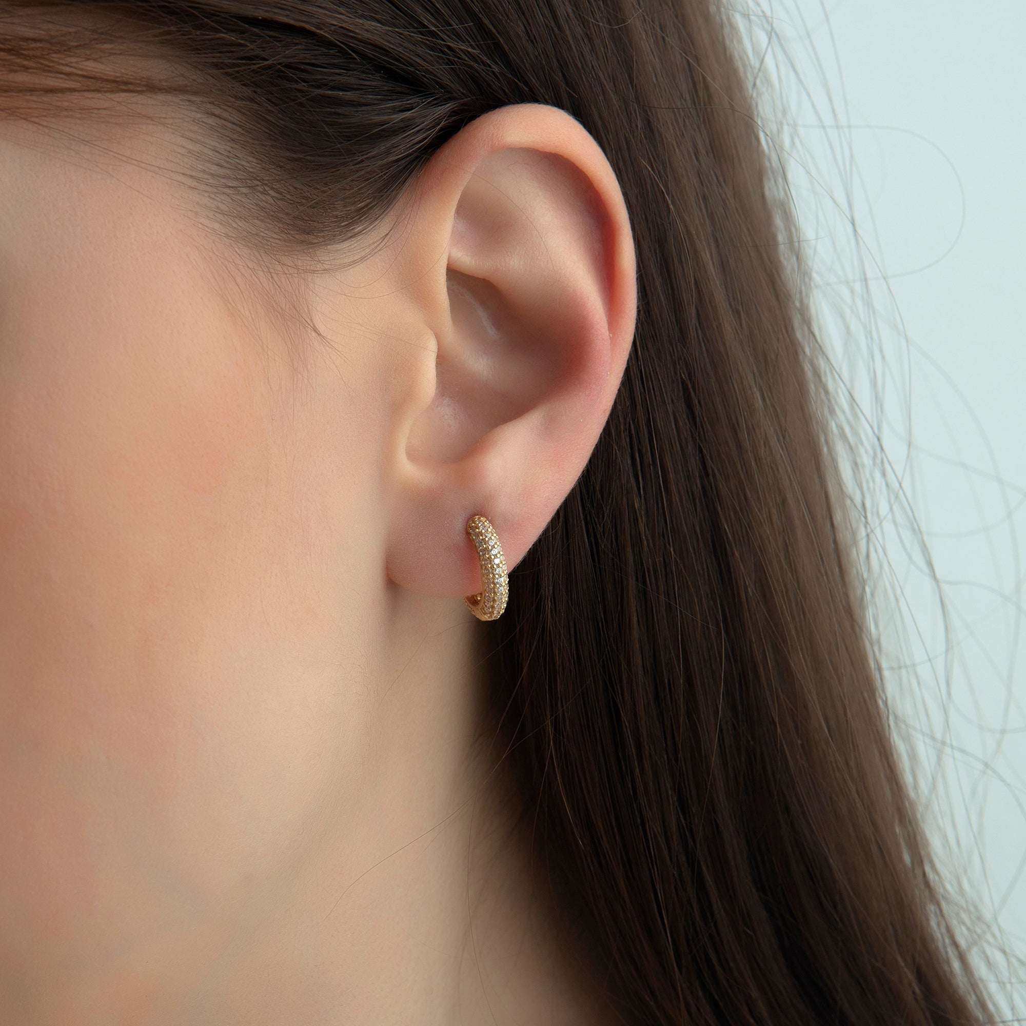 Add timeless sparkle to your style with these 14K Gold Pavé Stone Hoop Earrings. The sleek gold hoop design is adorned with pavé-set stones, creating a shimmering effect that catches the light from every angle.
