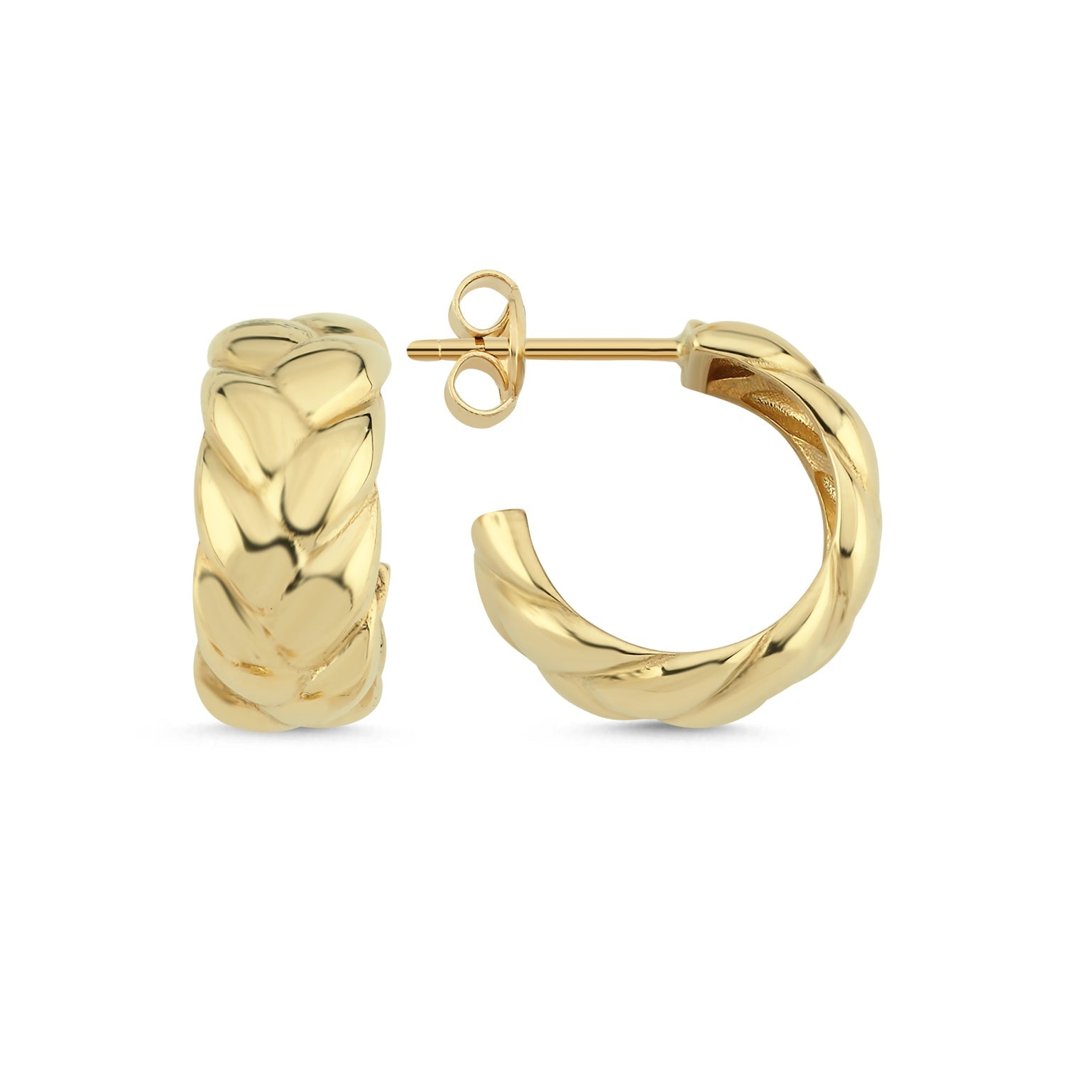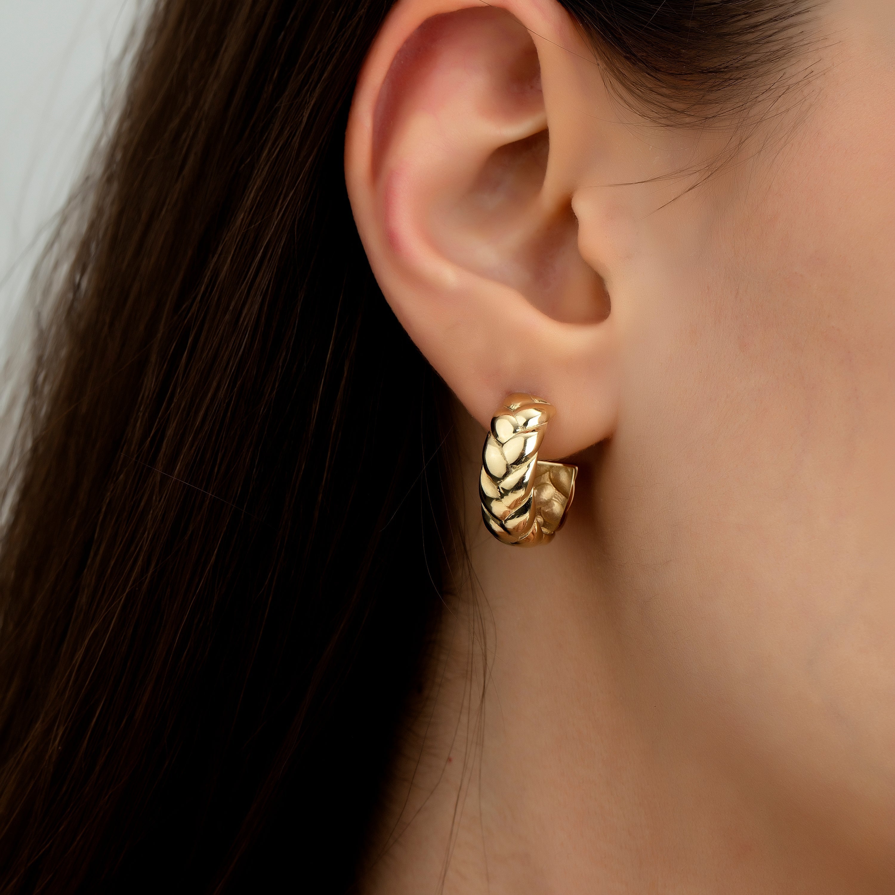 Add timeless texture to your look with these 14K Gold Braided Hoop Earrings. The intricate braided design creates a rich, dimensional look that catches the light beautifully. Their classic hoop silhouette is elevated by the detailed weaving, offering a perfect balance of sophistication and modern style.
