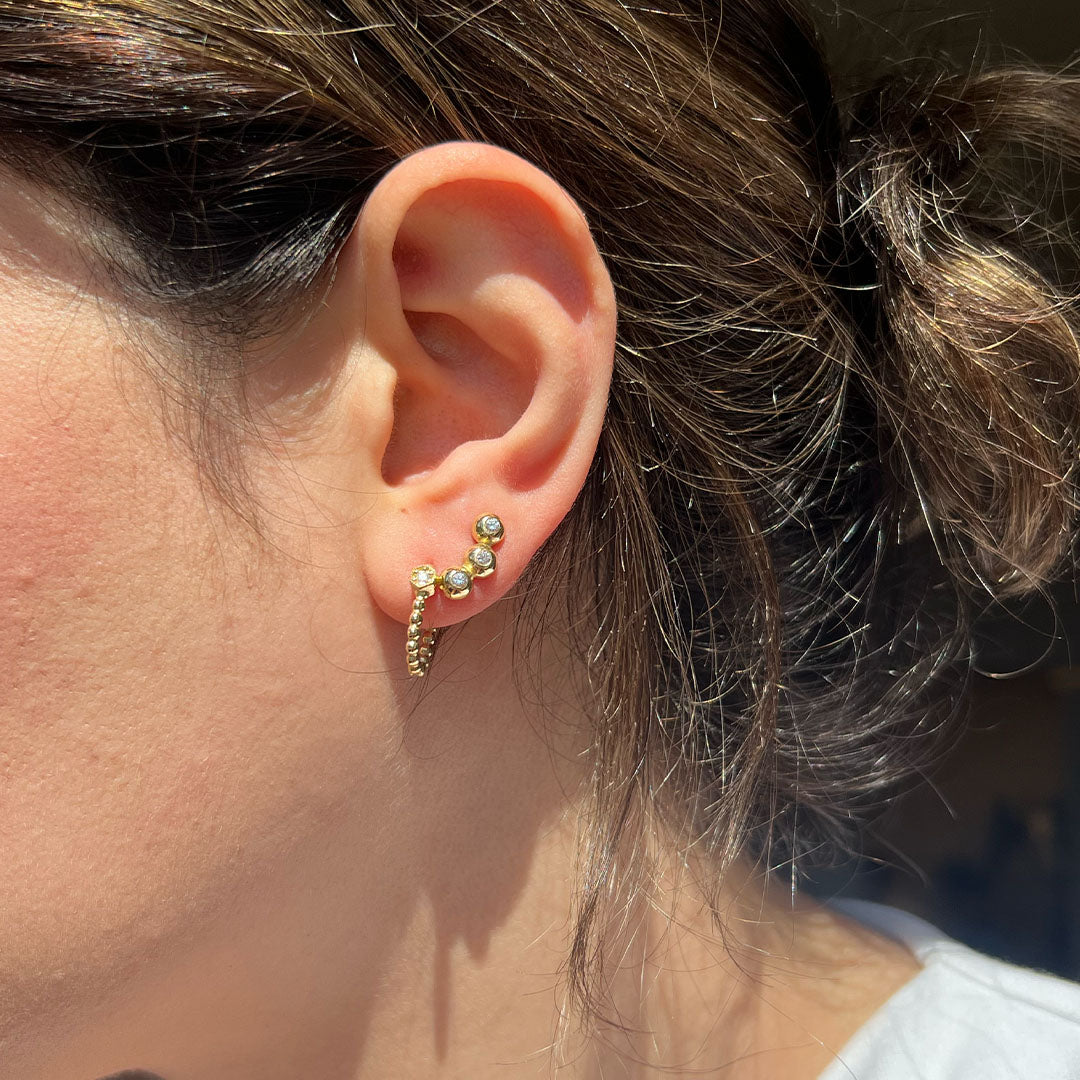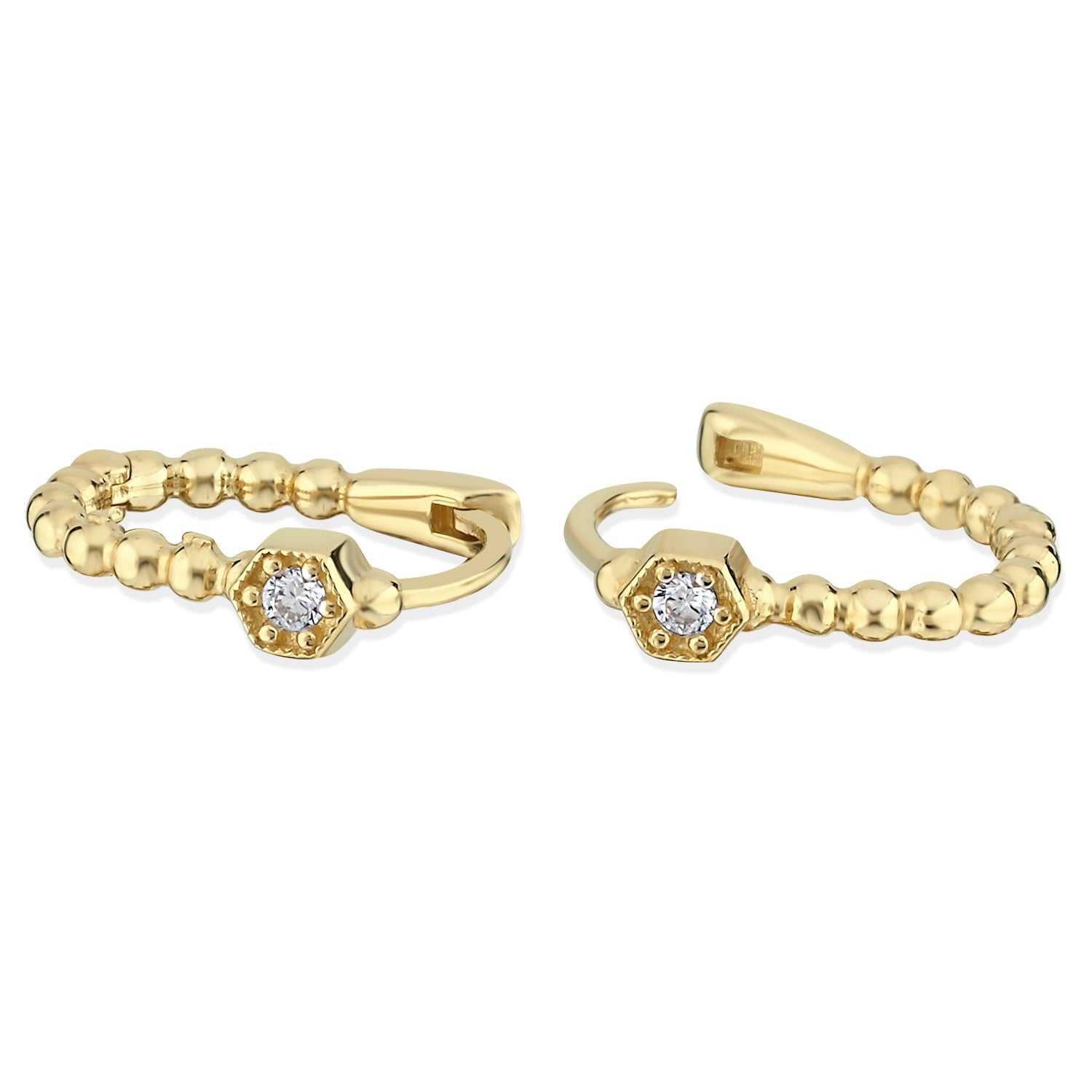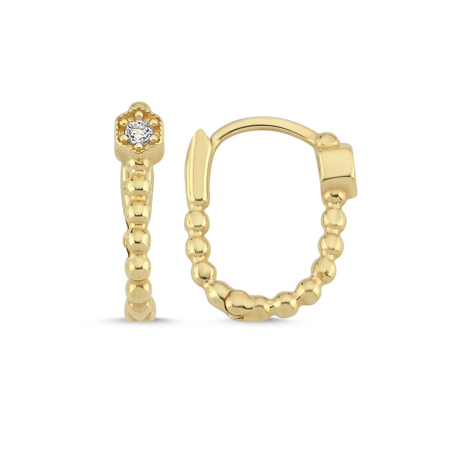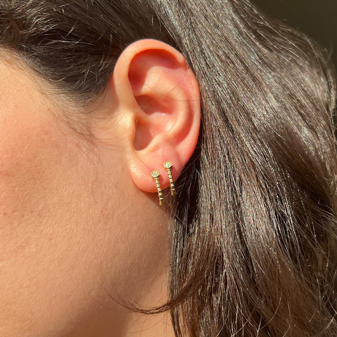 14K Gold Beaded Huggie Earrings with Diamond Accent