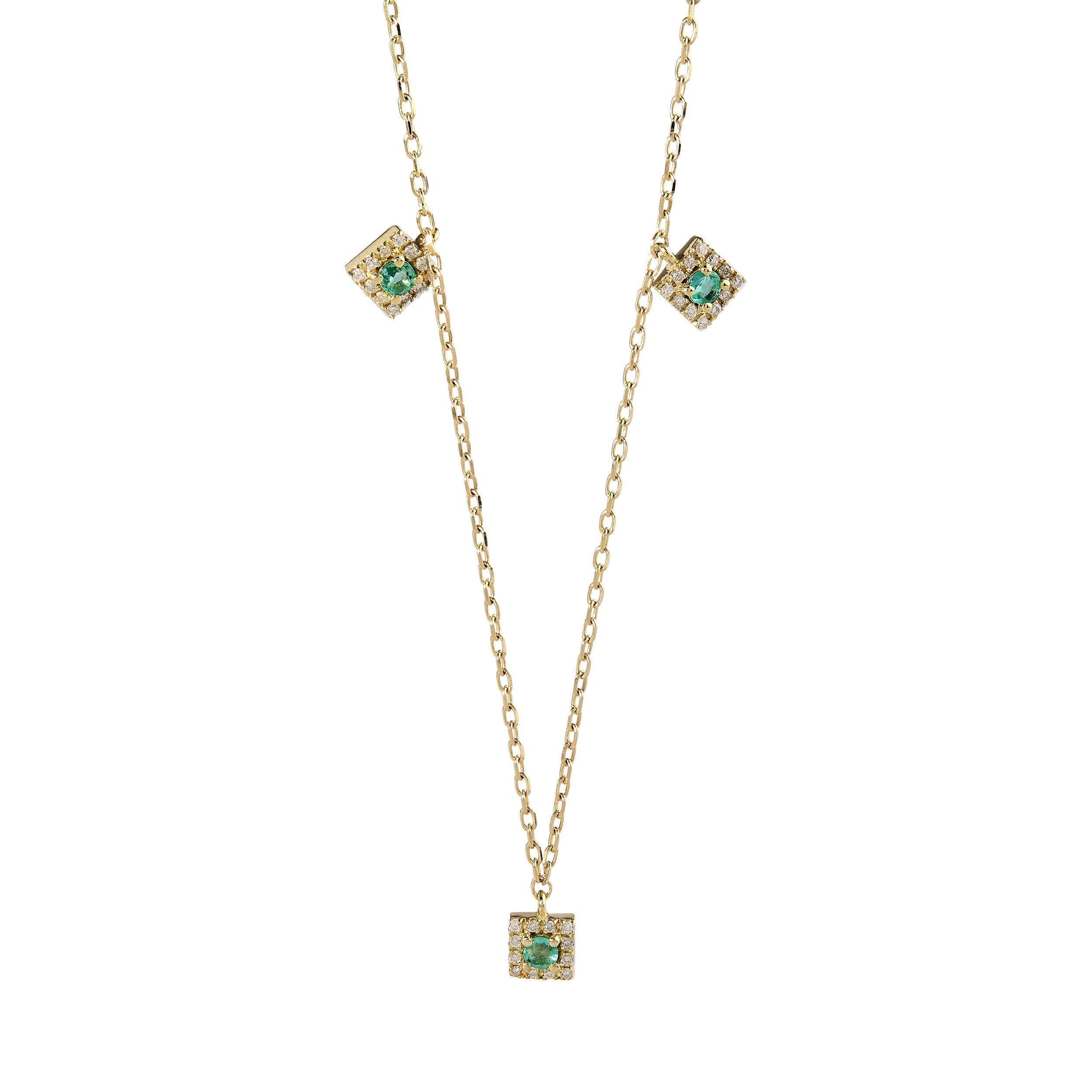 14K Gold Diamond Triple Emerald Necklace