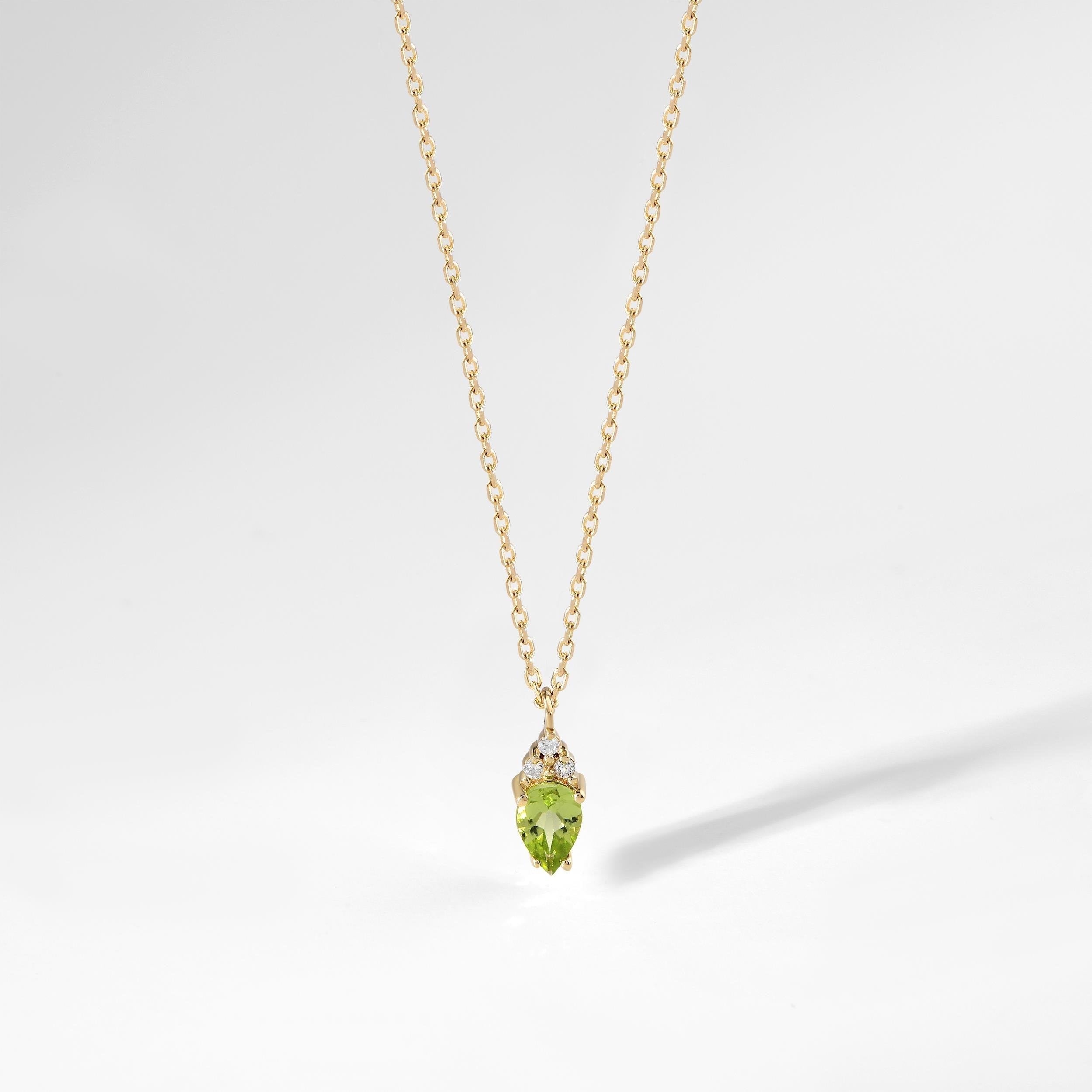 14 Carat Diamond Tiny Drop Peridot Necklace