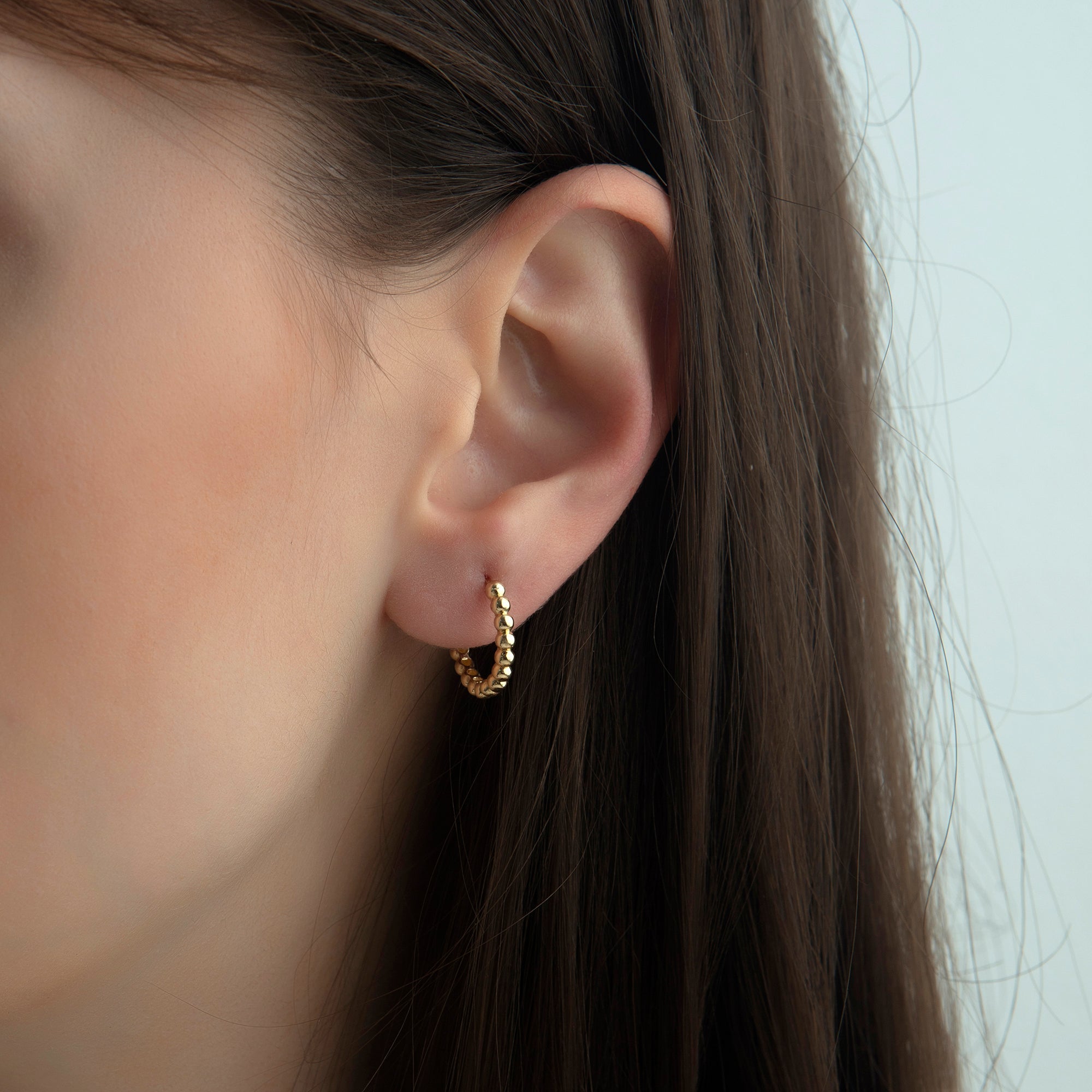 Bring timeless charm to your style with these 14K Gold Beaded Hoop Earrings. The polished beaded design adds texture and dimension, creating a modern yet timeless look. Lightweight and versatile, they're perfect for both everyday wear and special events.