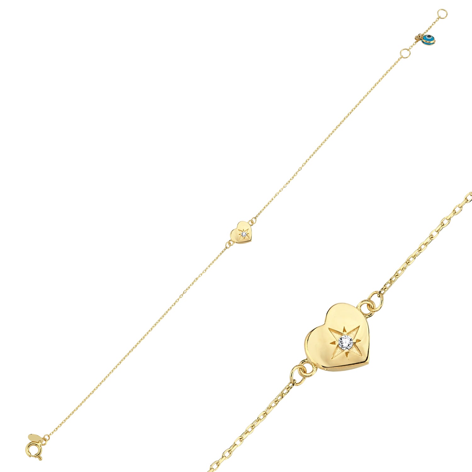 14K Gold Eta Carinae Heart Bracelet with Evil Eye Charm