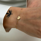 Delicate and charming, this 14K Gold Eta Carinae Heart Bracelet features a beautifully crafted heart with a sparkling star accent at its center. A dainty evil eye charm adds a touch of protection and positive energy, making this bracelet a meaningful piece for any occasion.