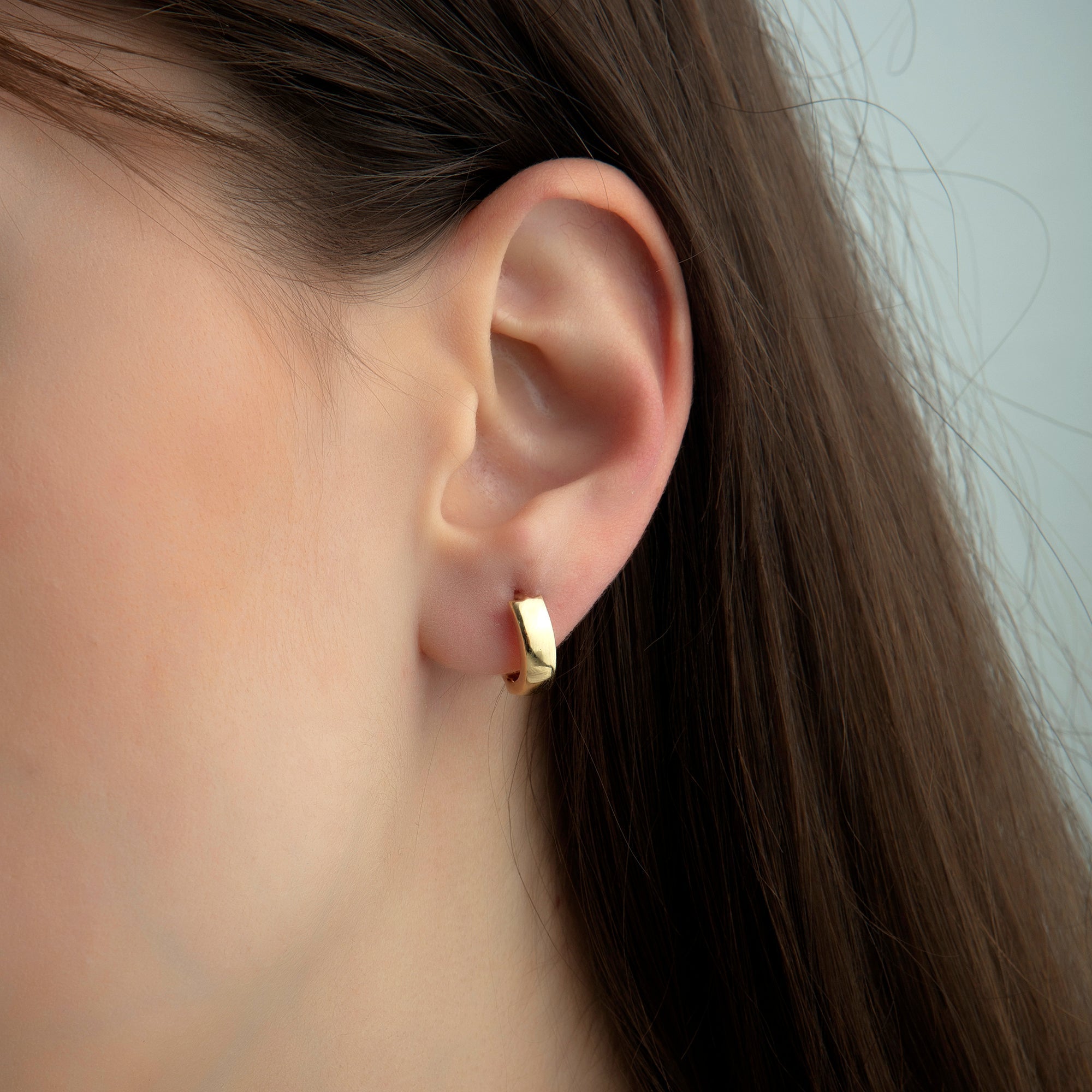 - Minimalist huggie hoops with a smooth, polished surface for a modern touch