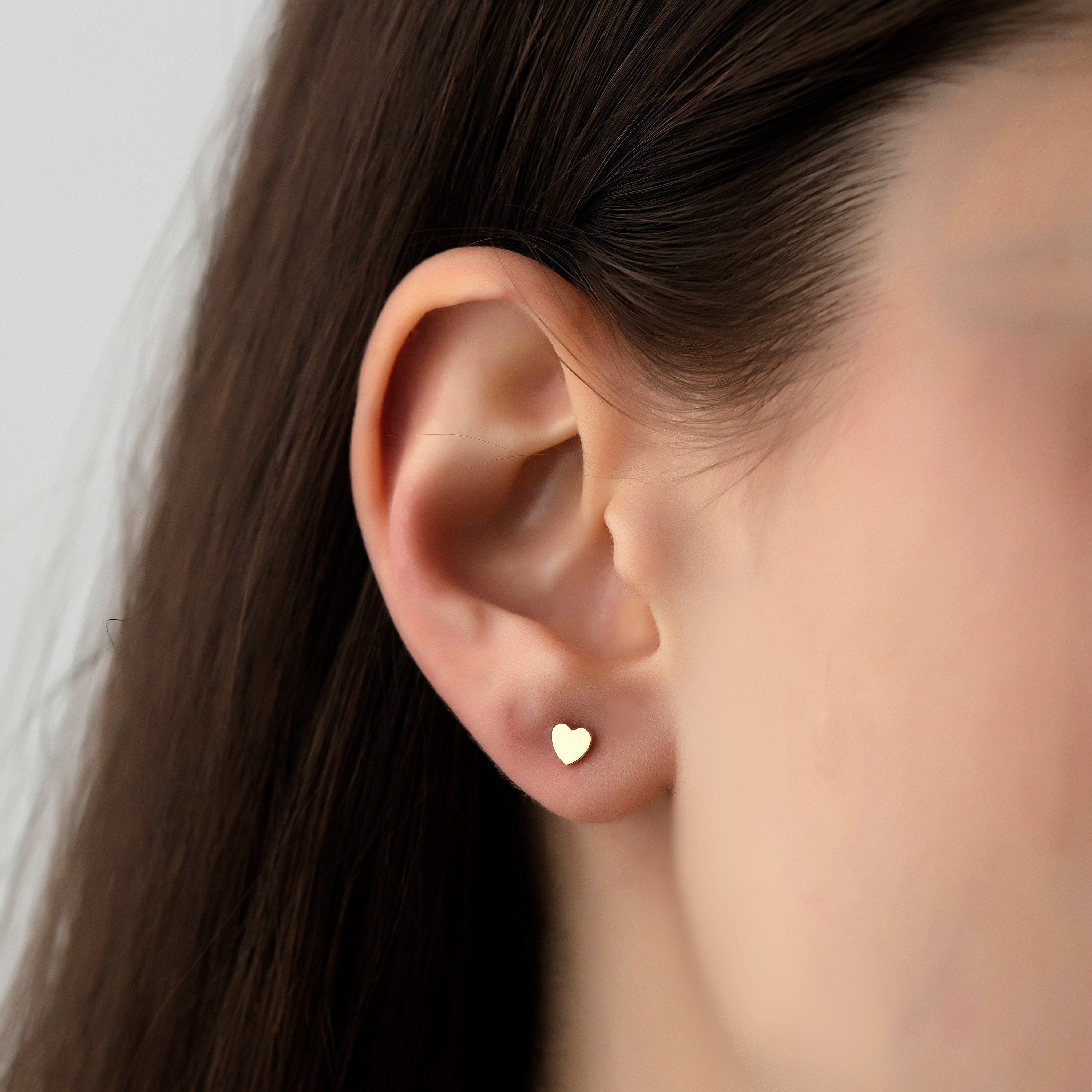 Add a heartwarming touch to your jewelry collection with these elegant mini heart studs.