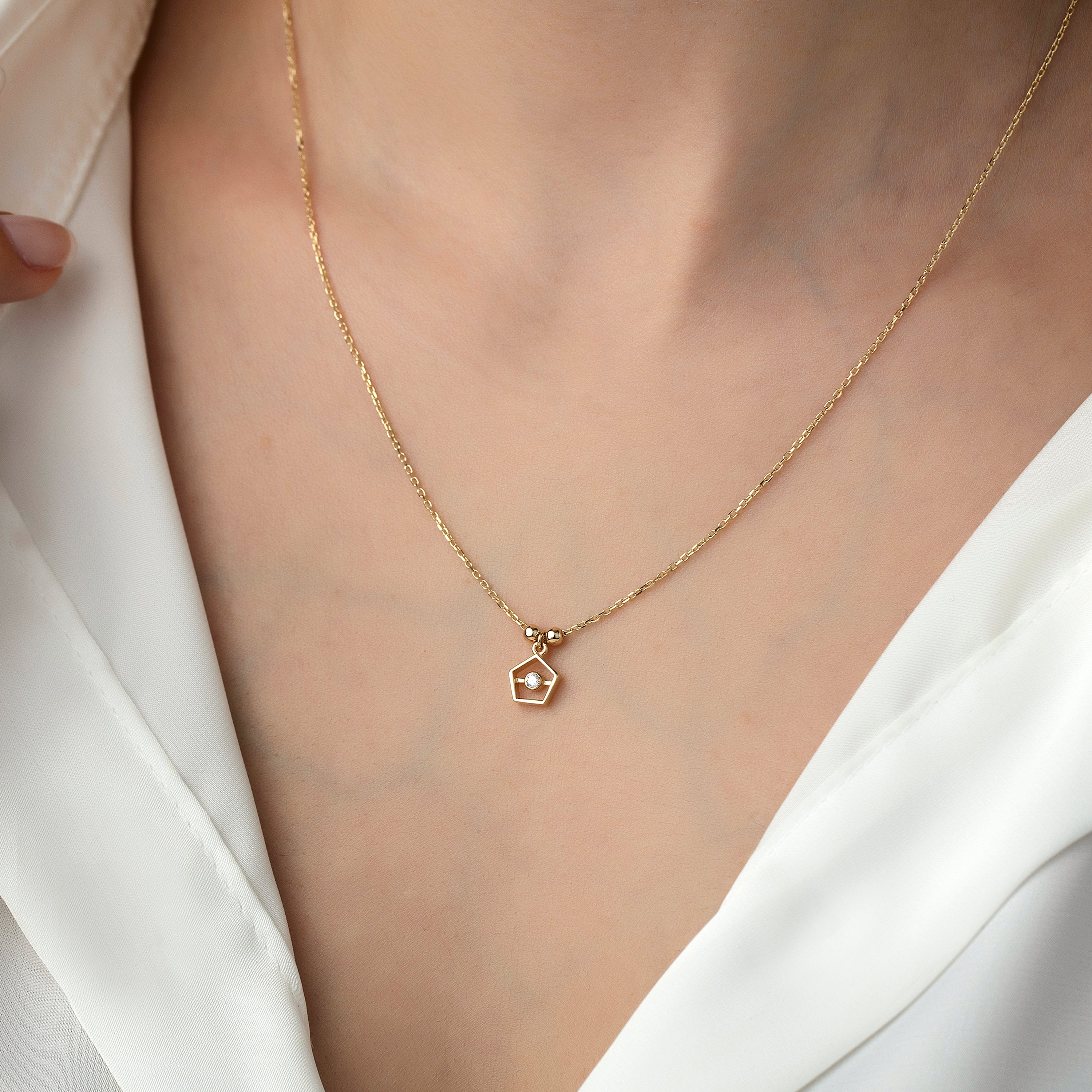 14K Gold Mini Penta Single Stone Necklace