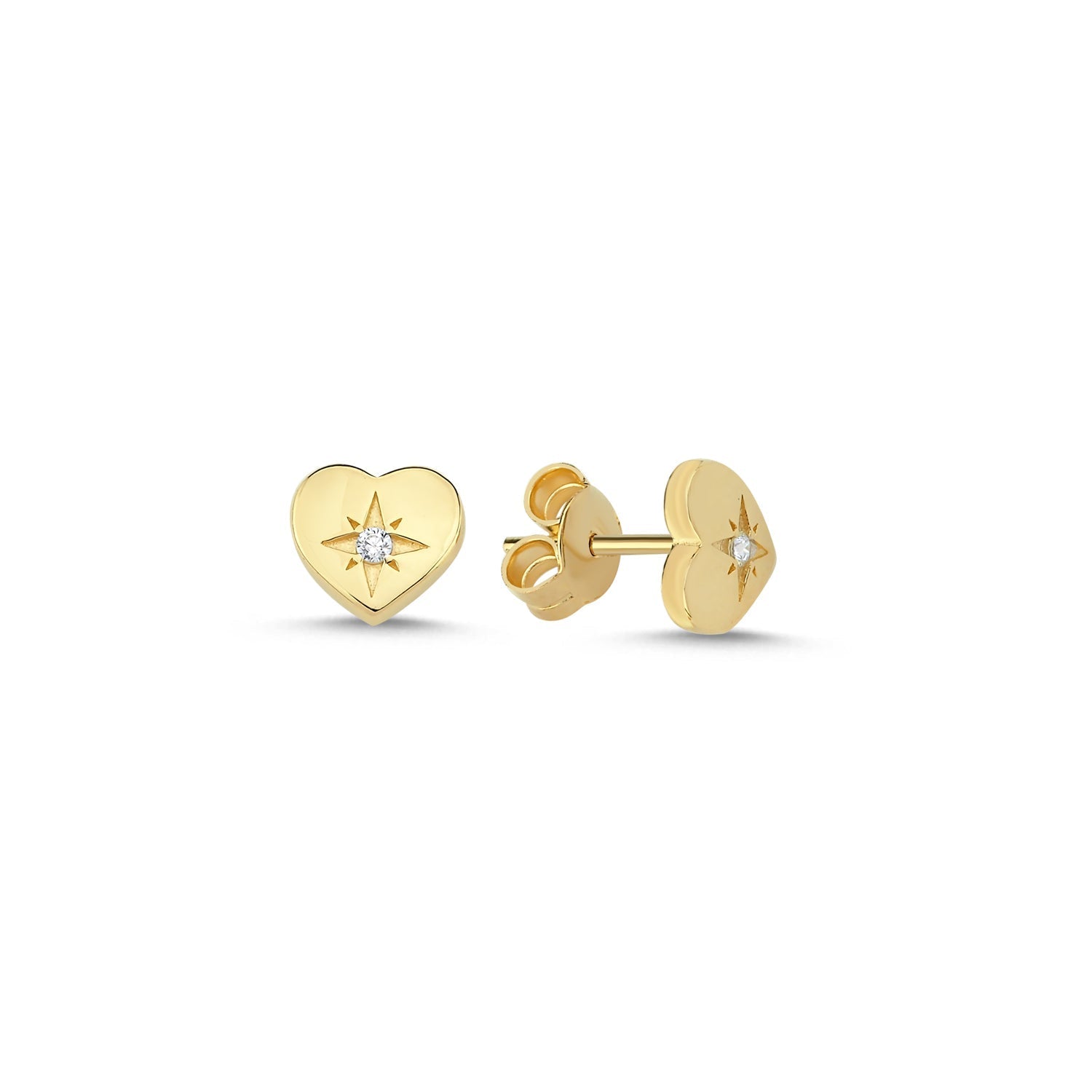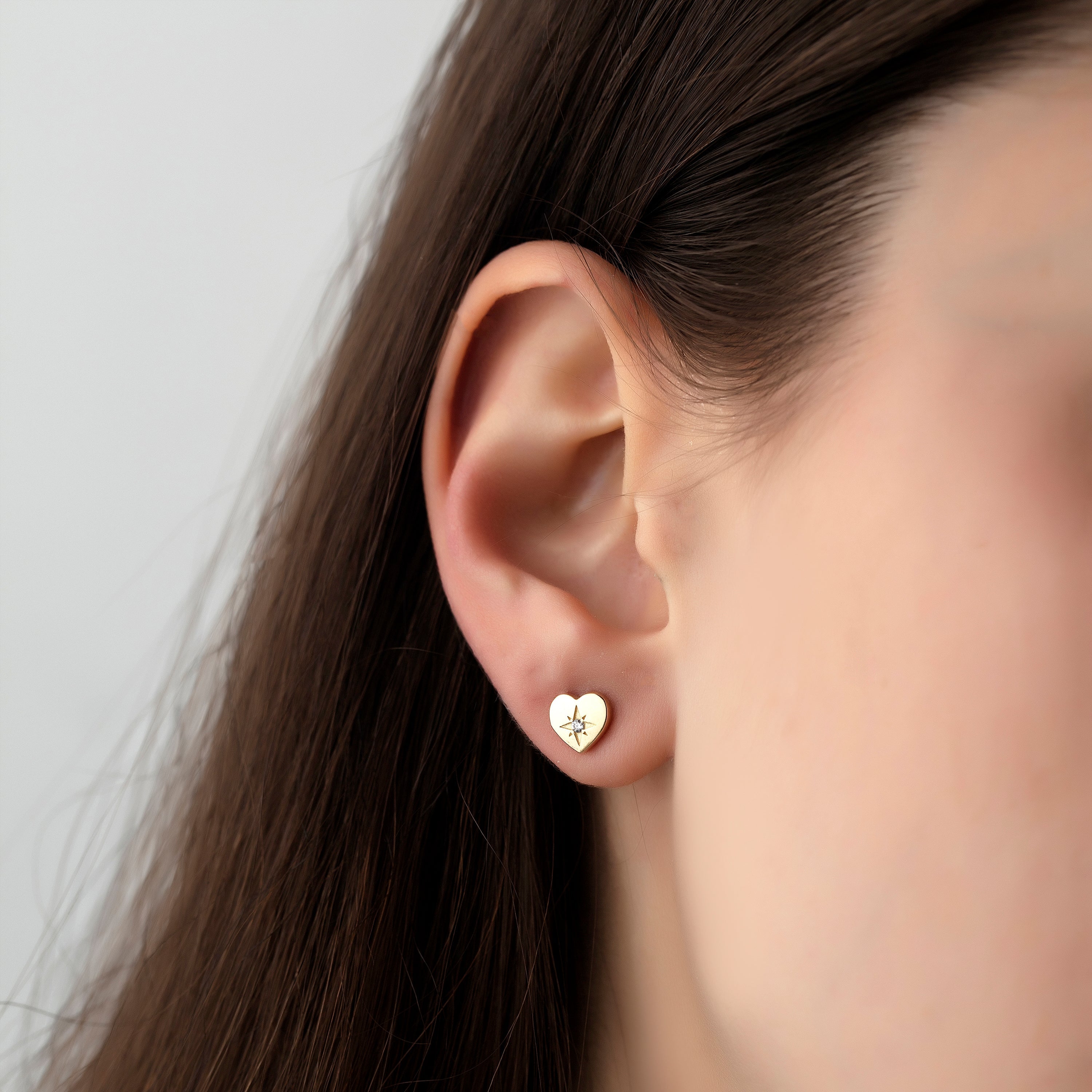 Add a touch of cosmic charm to your jewelry collection with these star-kissed heart studs.
