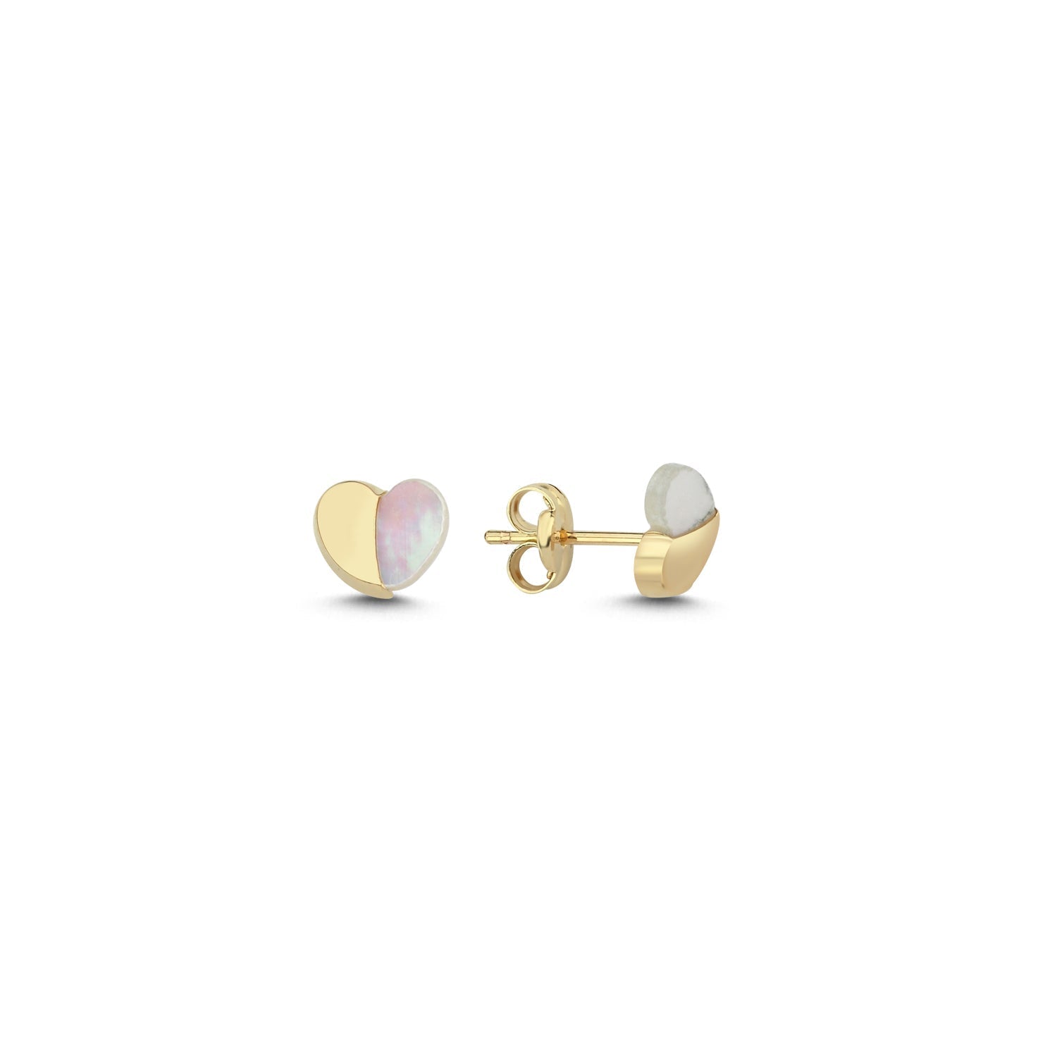 14K Gold Dainty Mother of Pearl Heart Stud Earrings
