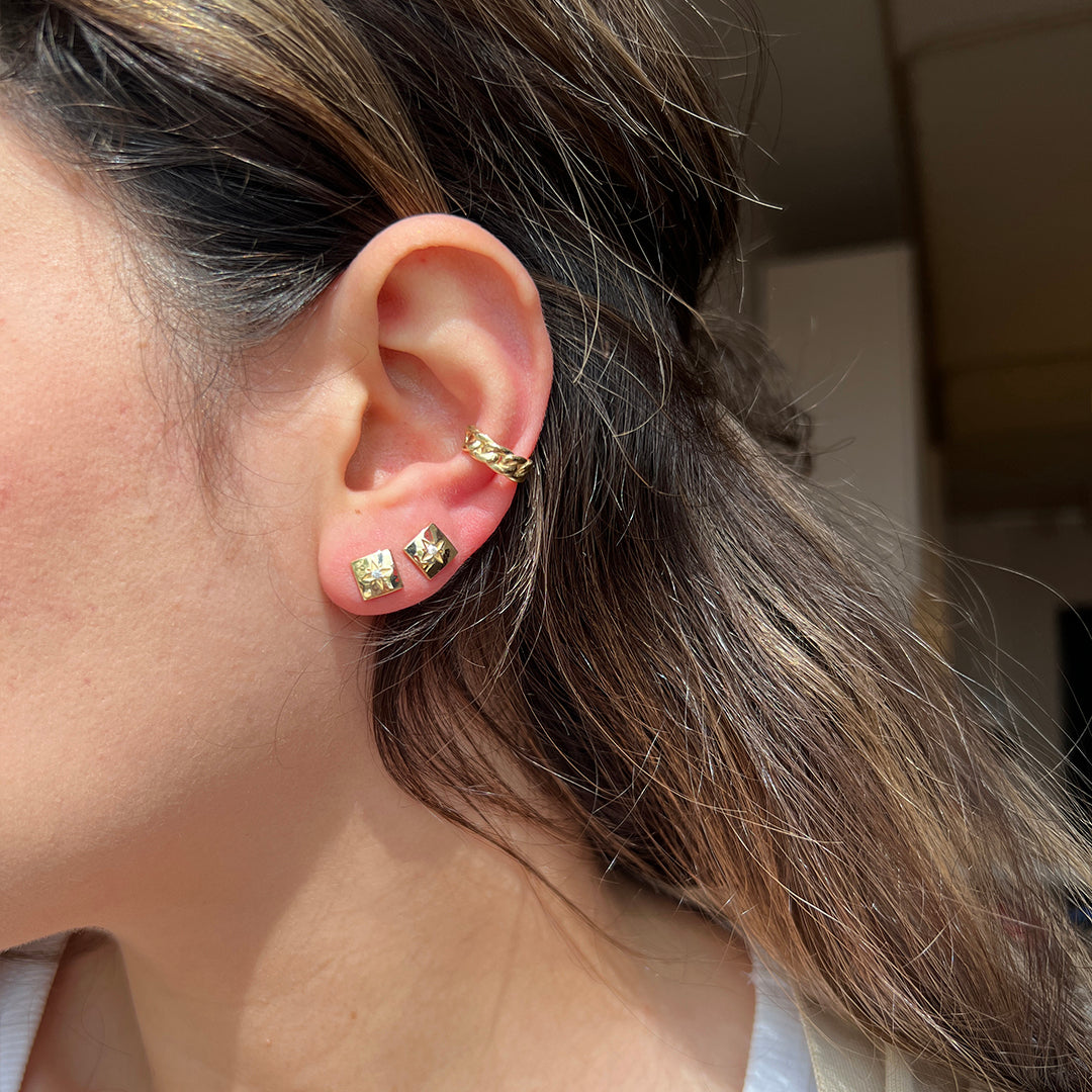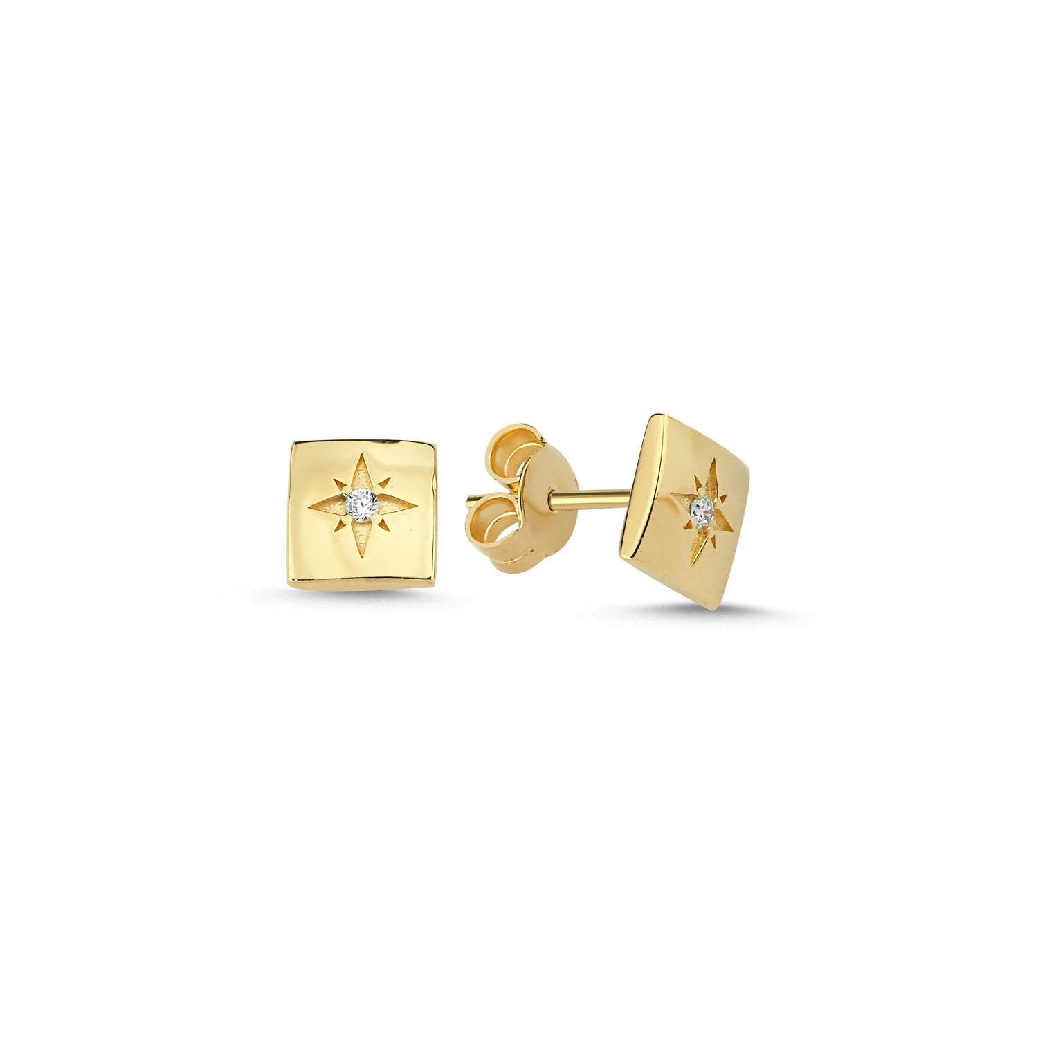 14K Gold Dainty Eta Carinae Square Stud Earrings