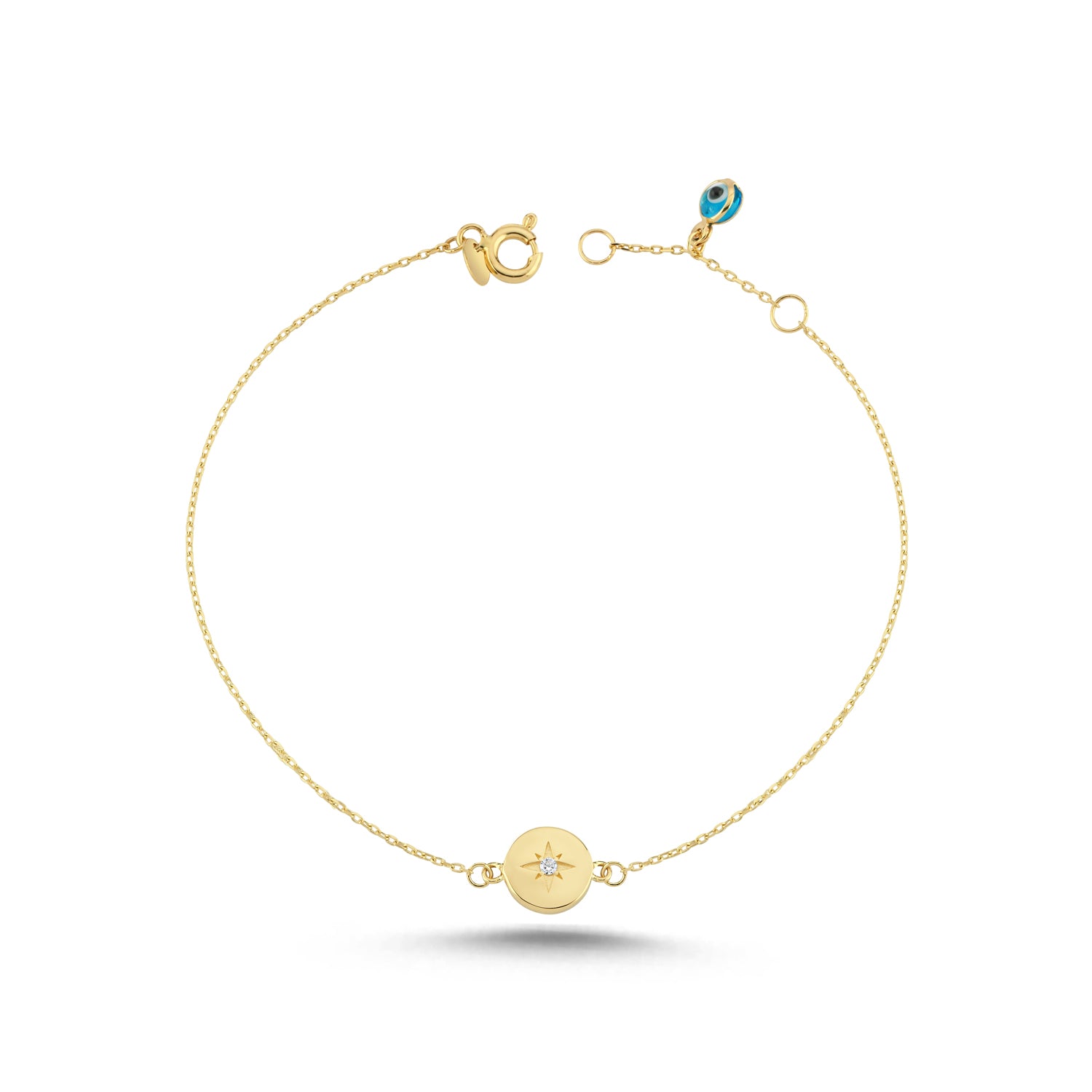 14K Gold Eta Carinae Round Star Evil Eye Bracelet