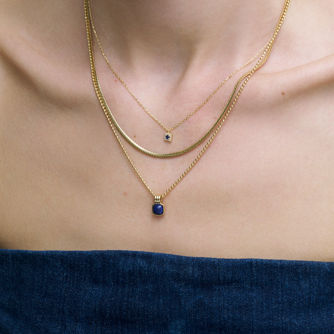 14K Gold Gold Timeless Lapis Natural Stone Necklace