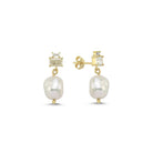 14K Gold Double Baguette Baroque Pearl Dangle Earrings (S)