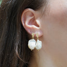14K Gold Tiny Sparkles Baroque Pearl Dangle Earrings (L)
