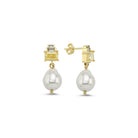 14K Gold Duble Baguette Baroque Pearl Dangle Earrings (S)