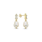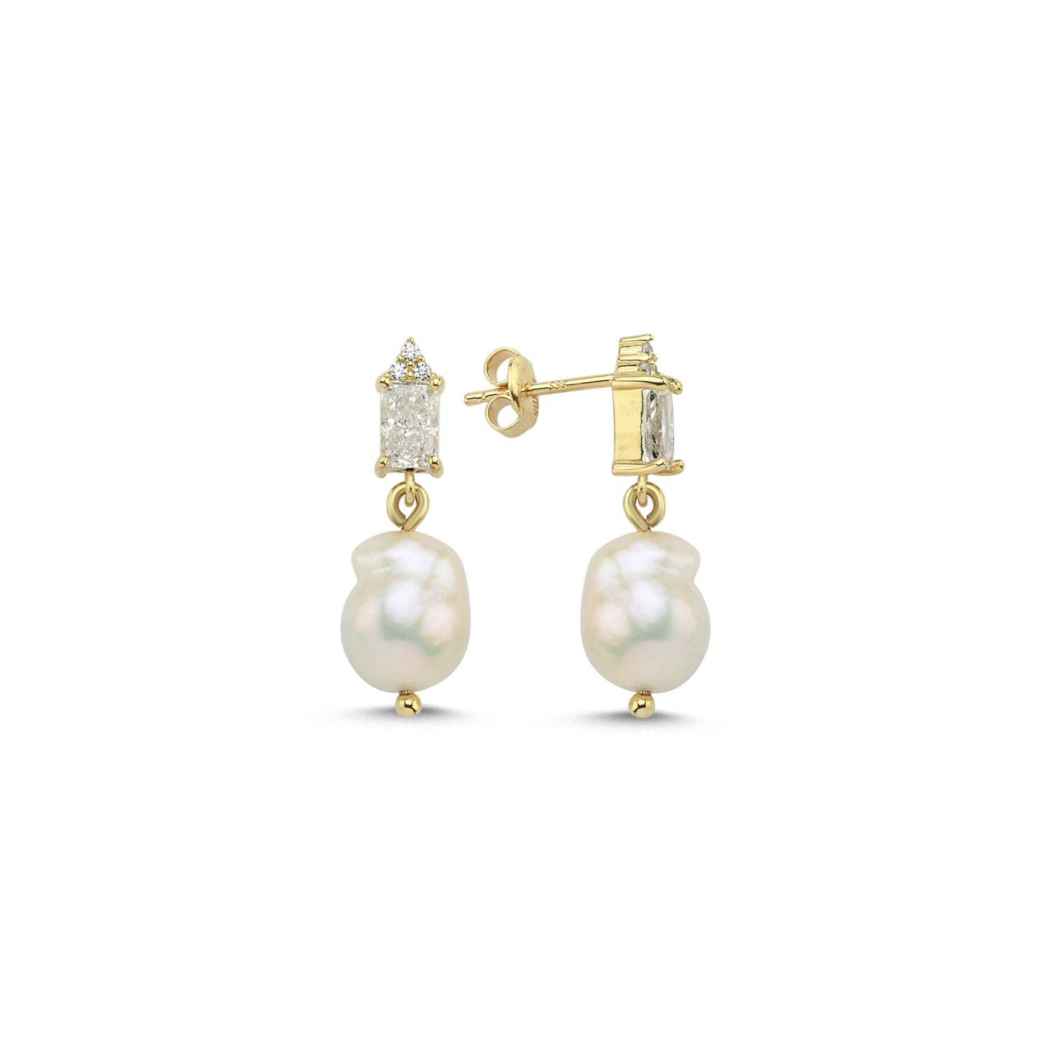 14K Gold Mini Baguette Baroque Pearl Dangle Earrings (S)
