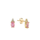 Brighten your style with these 14K Gold Trio Diamond Gemstone Stud Earrings. Featuring an oval-cut gemstone topped with a trio of sparkling diamonds, these studs offer a refined yet modern look. The radiant gold setting enhances the brilliance of the stones, making them a versatile choice for both everyday wear and special moments.