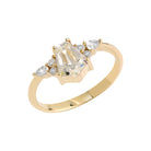 Step into elegance with this 14K gold Tiny Sparkles Princess Stone ring. Featuring a faceted center stone in a regal silhouette, framed by brilliant pear and round-cut accents, this design brings fairytale sparkle to your everyday style.