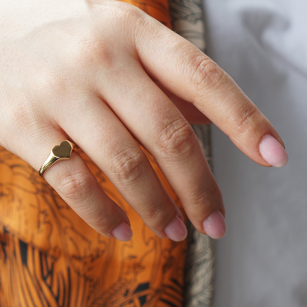 - Smooth heart centerpiece with a modern signet ring silhouette