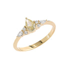This 14K Gold Pear-Cut Stone Ring features a stunning pear-cut stone at its center, surrounded by sparkling accent stones. The delicate design enhances the vibrant hue of the centerpiece, creating a sophisticated and graceful piece.