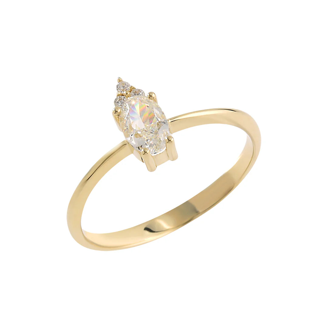 14K Gold Tiny Sparkles Mini Oval Stone Ring