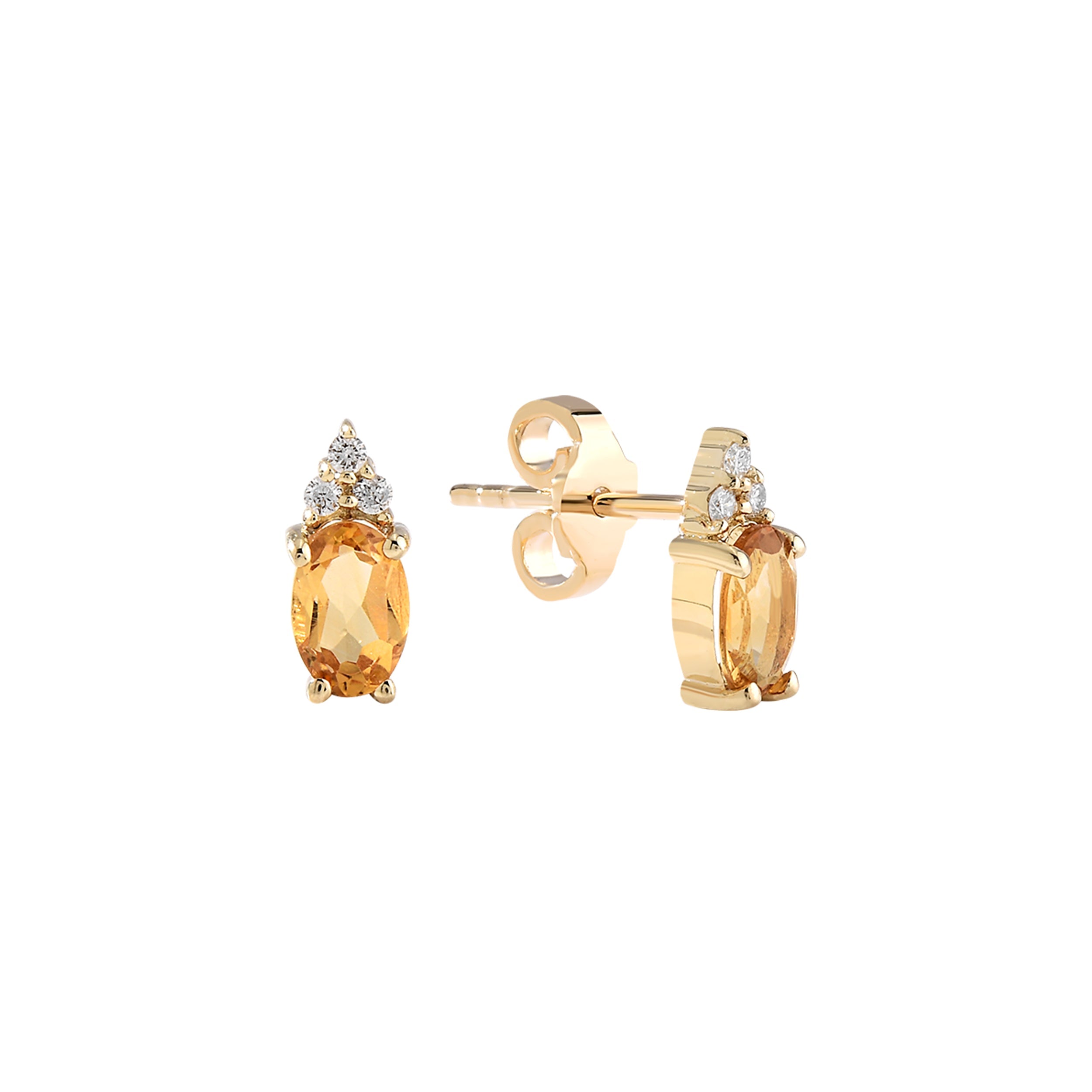 - Oval citrine with diamond accents for a balanced sparkle in a classic stud design.