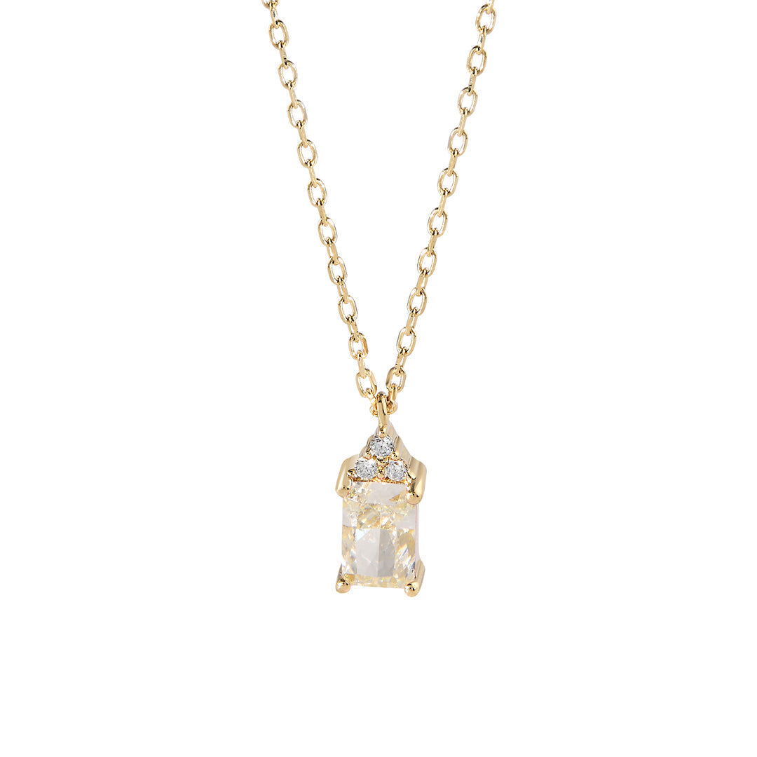 14K Gold Tiny Sparkles Princess Baguette Stone Necklace