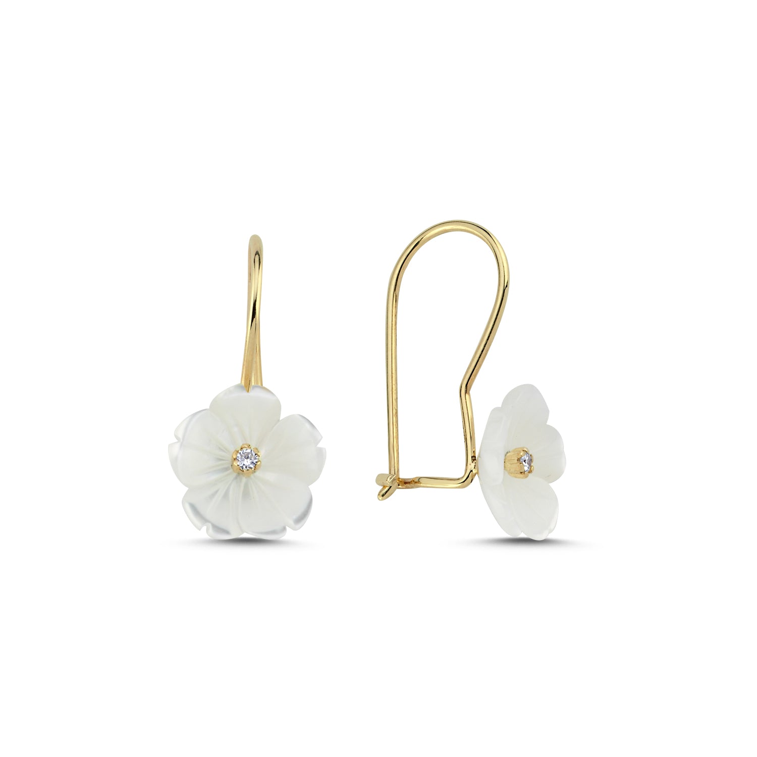 14K Gold Jasmine Vintage Diamond White Mother of Pearl Earrings