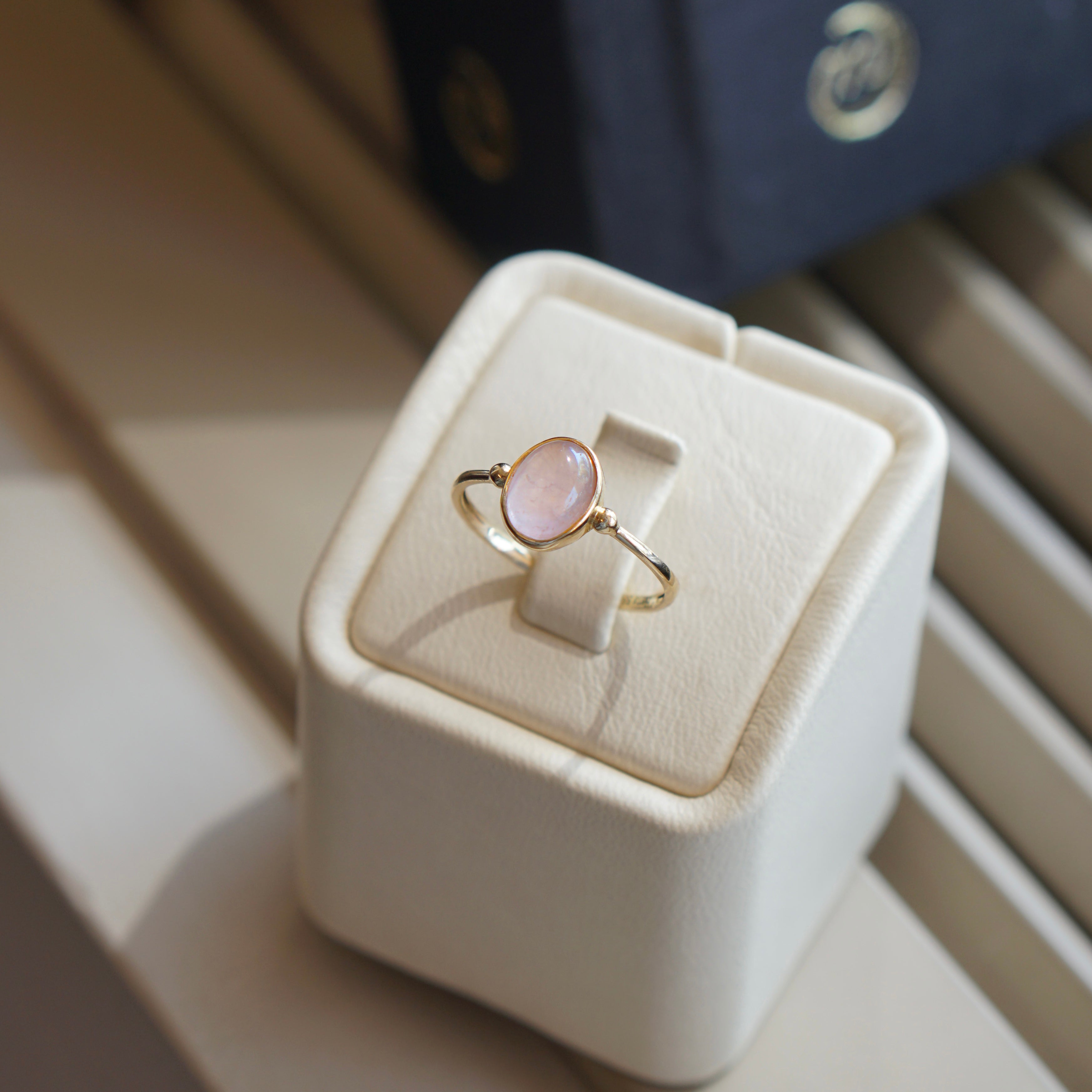 Soft elegance meets vintage charm in this 14K gold rose quartz ring. With its delicate pink hue and timeless oval cut, this natural stone ring adds a romantic glow to your everyday jewelry collection.