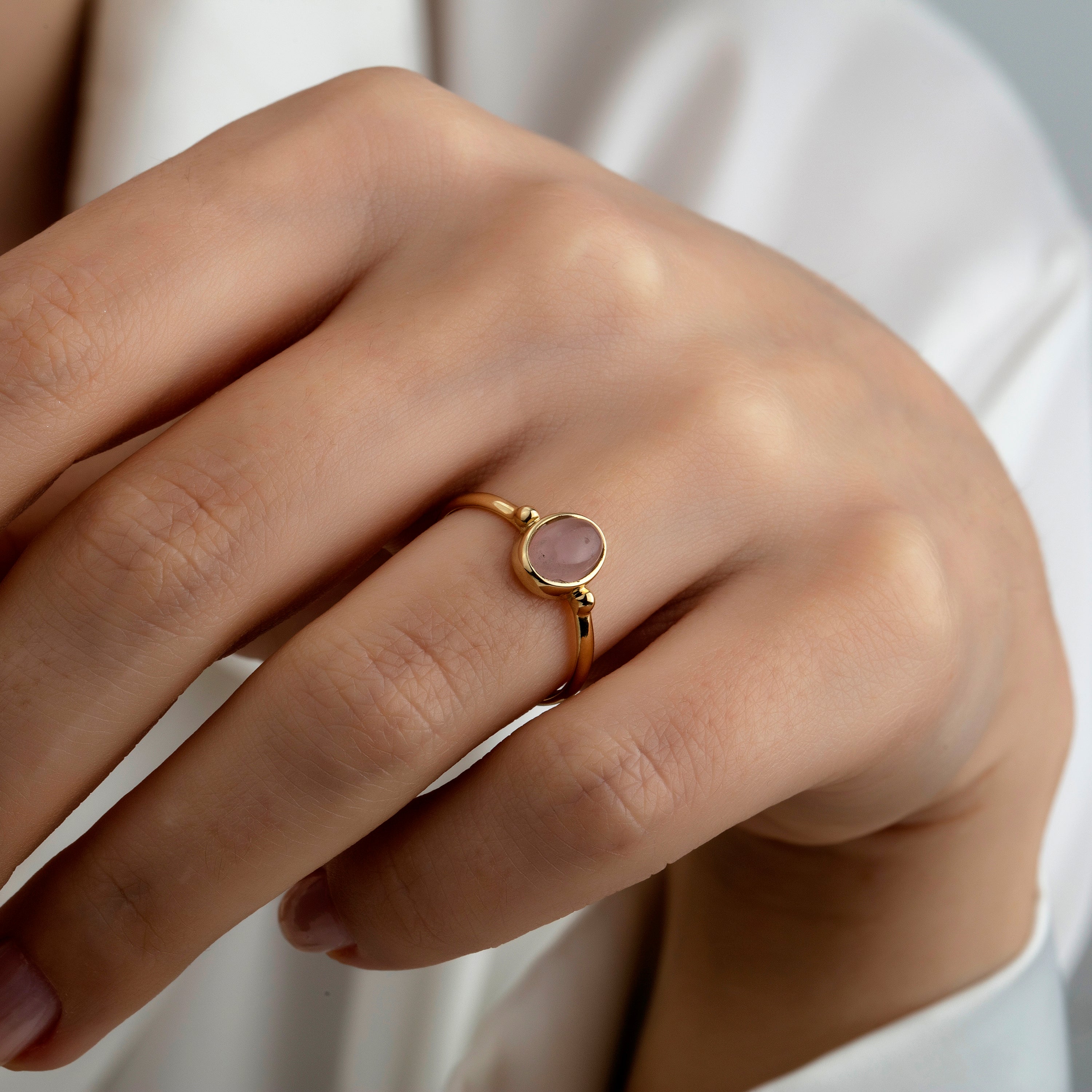 Wrap your finger in the soft blush of rose quartz, perfect for lovers of subtle, meaningful elegance in natural stone jewelry.