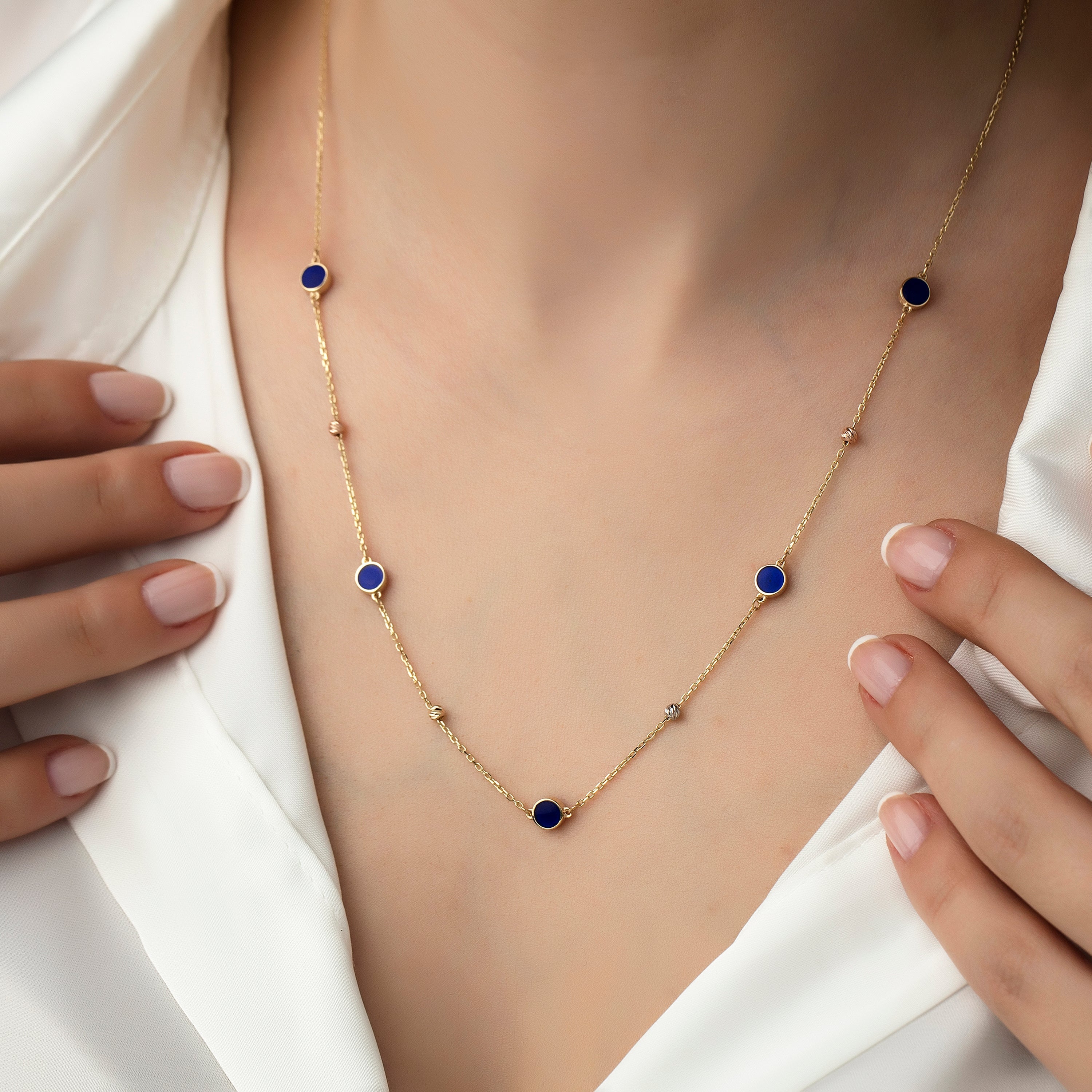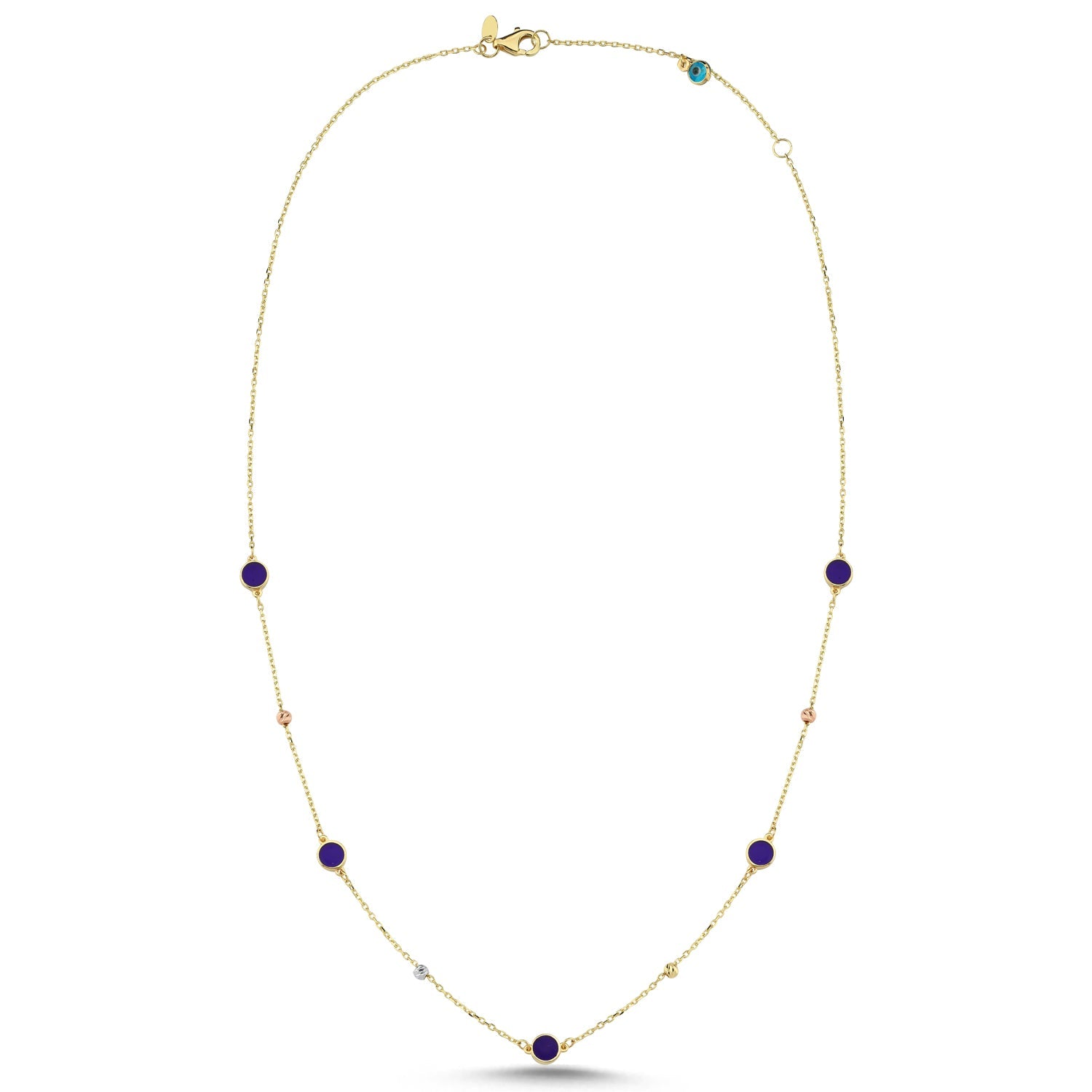 14K Gold Enamel Circle Chain Necklace