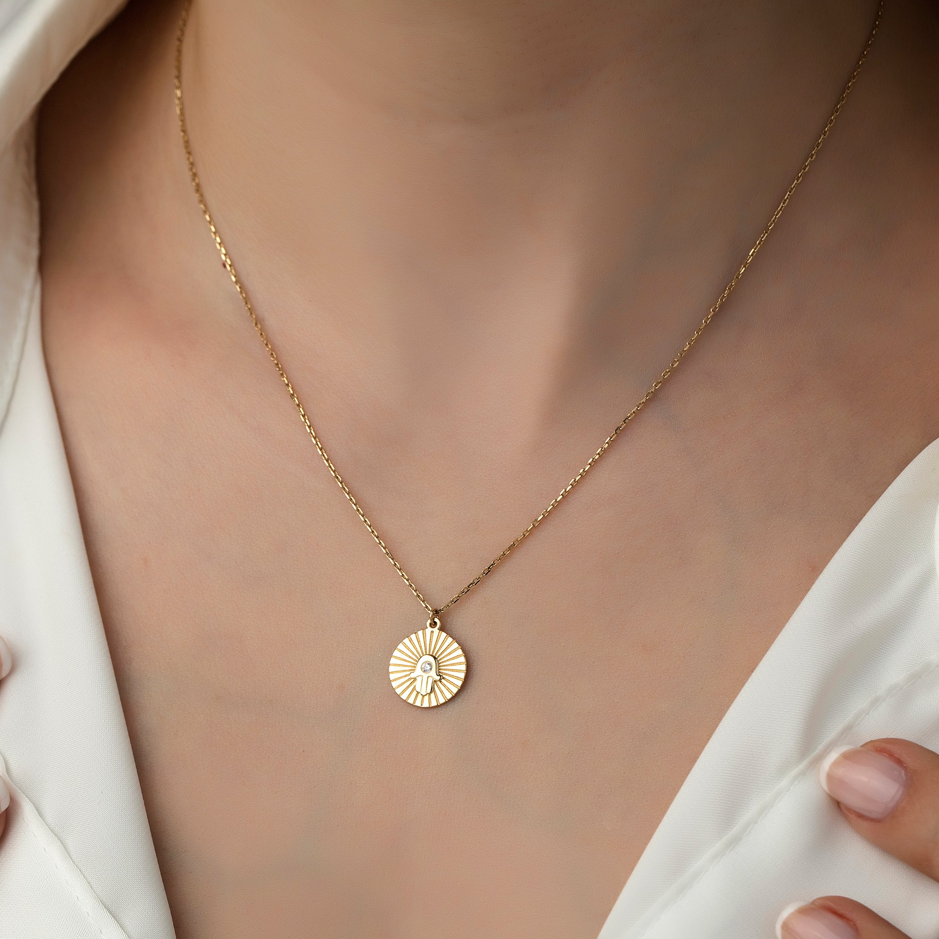 14K Gold Ray Hamsa Necklace