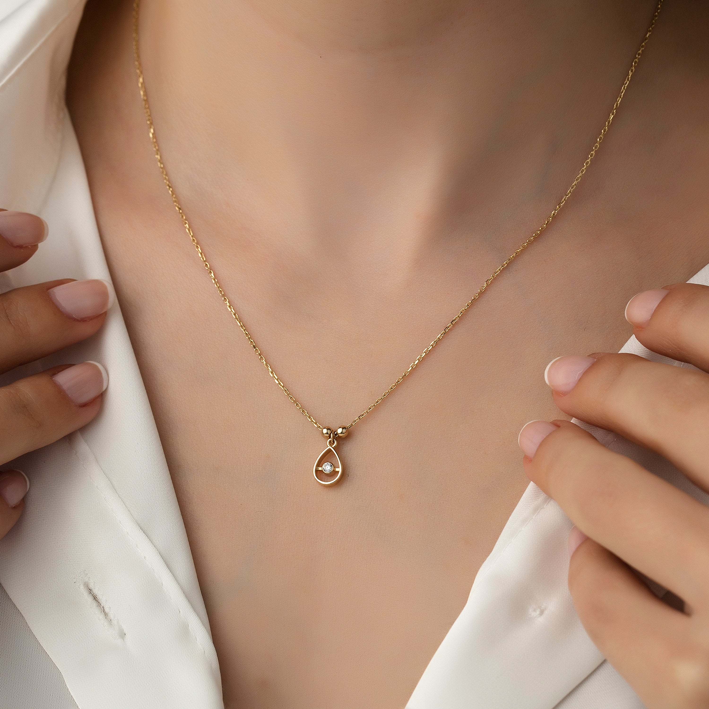 Hems Jewellery 14 K Gold Mini Drop Solitaire Necklace
