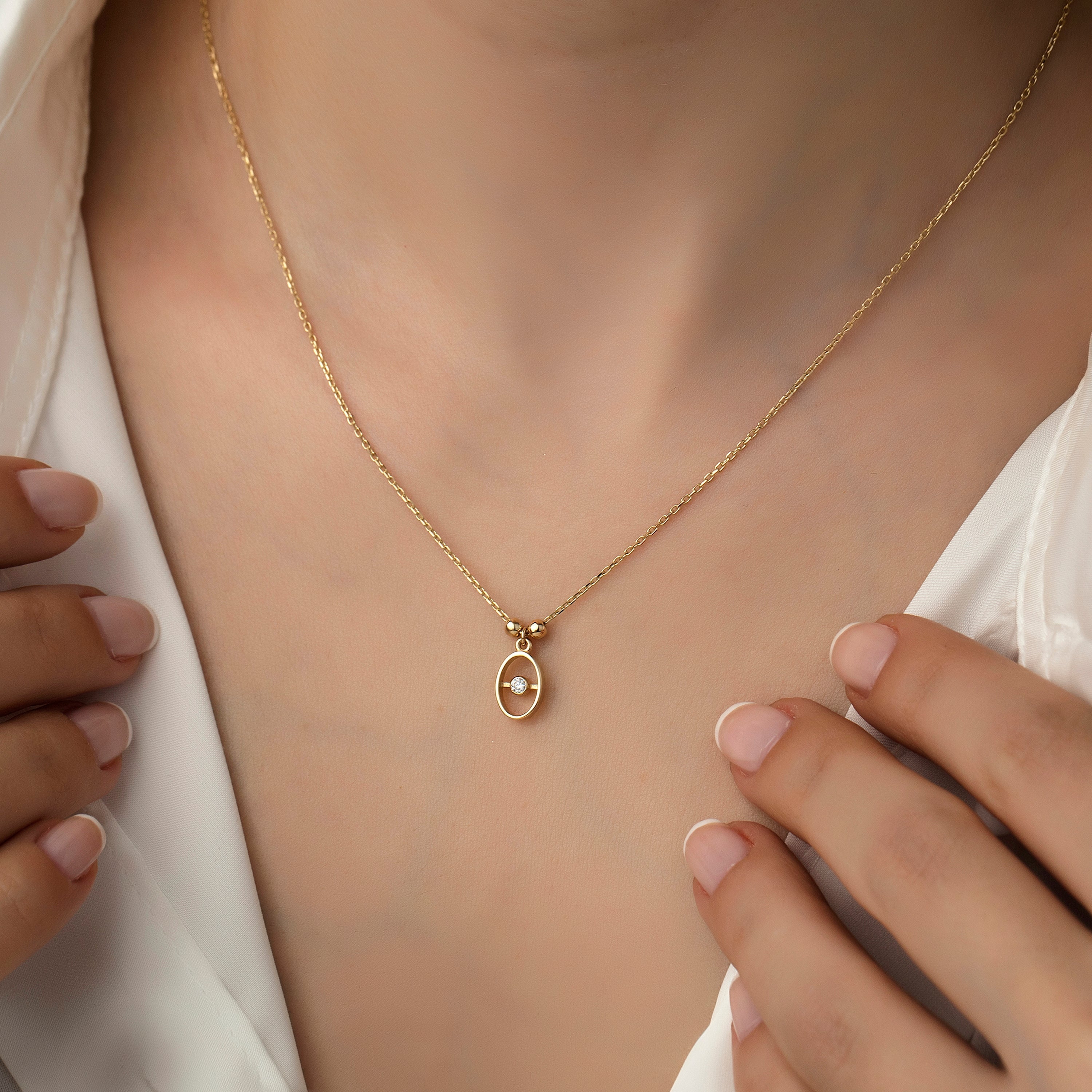Hems Jewellery 14K Gold Mini Ellipse Single Stone Necklace