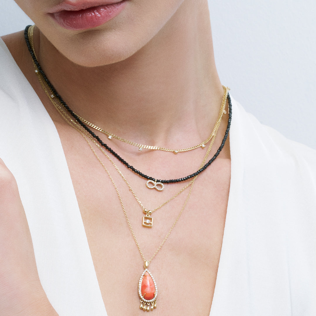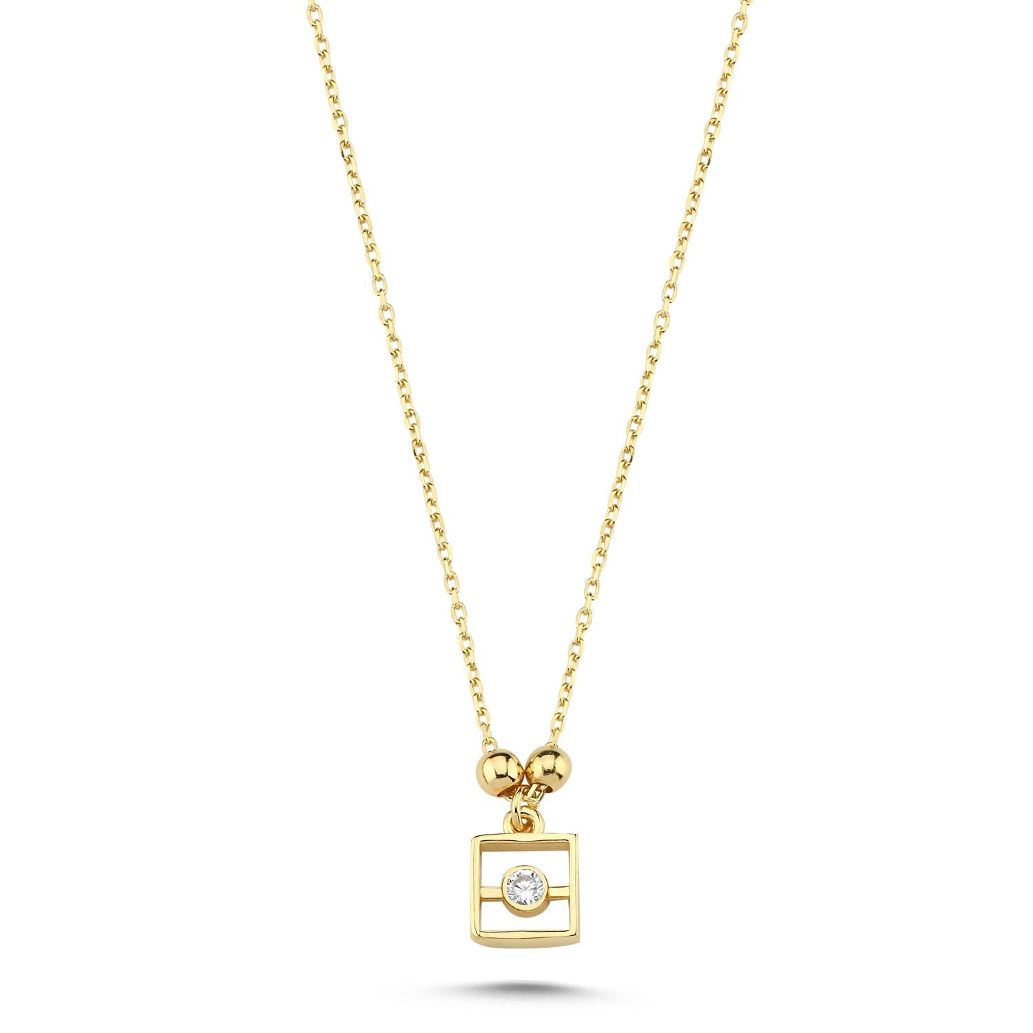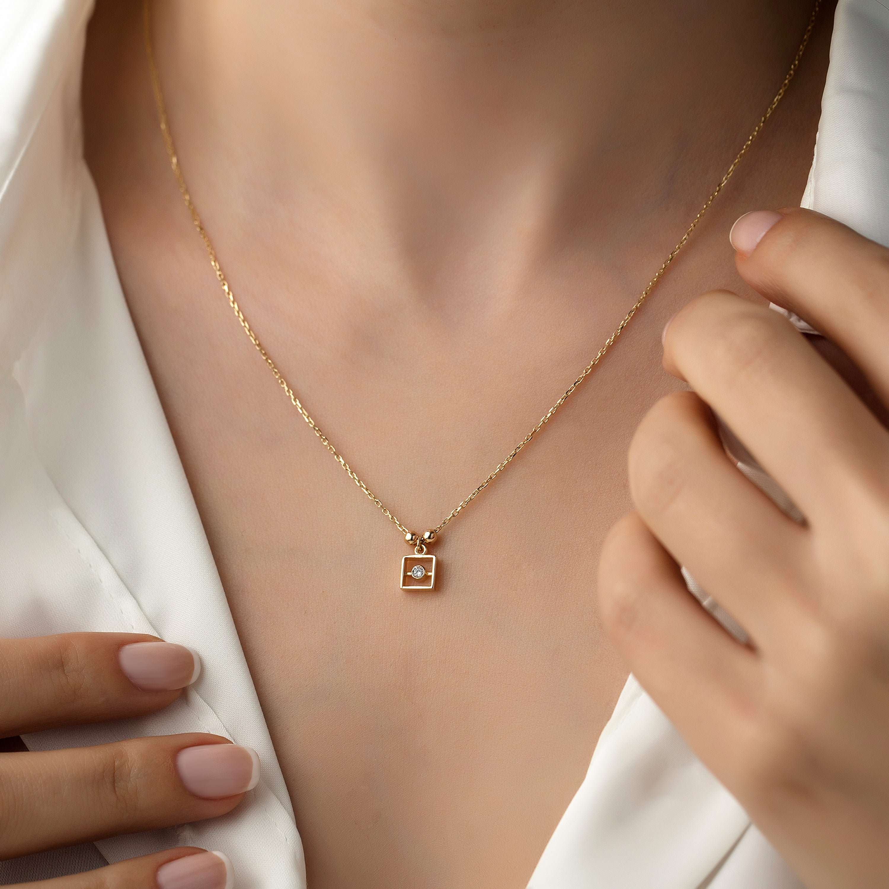 Hems Jewellery 14 K Gold Mini Square Single Stone Necklace