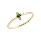 Make a statement in subtle style with this 14K gold baguette emerald diamond ring. Featuring a sleek emerald-cut center stone paired with two round diamonds in an asymmetrical setting, this piece redefines dainty sophistication.