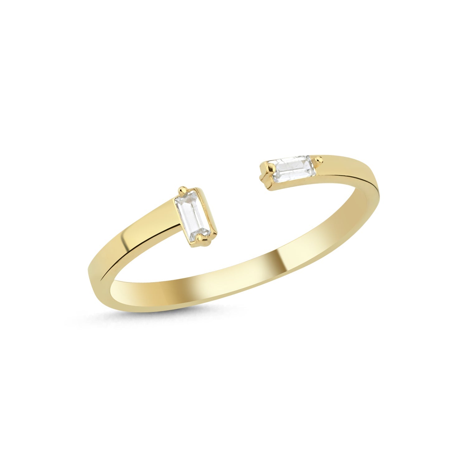Effortlessly elevate your everyday look with this baguette open ring that blends minimalism and sparkle in perfect harmony.