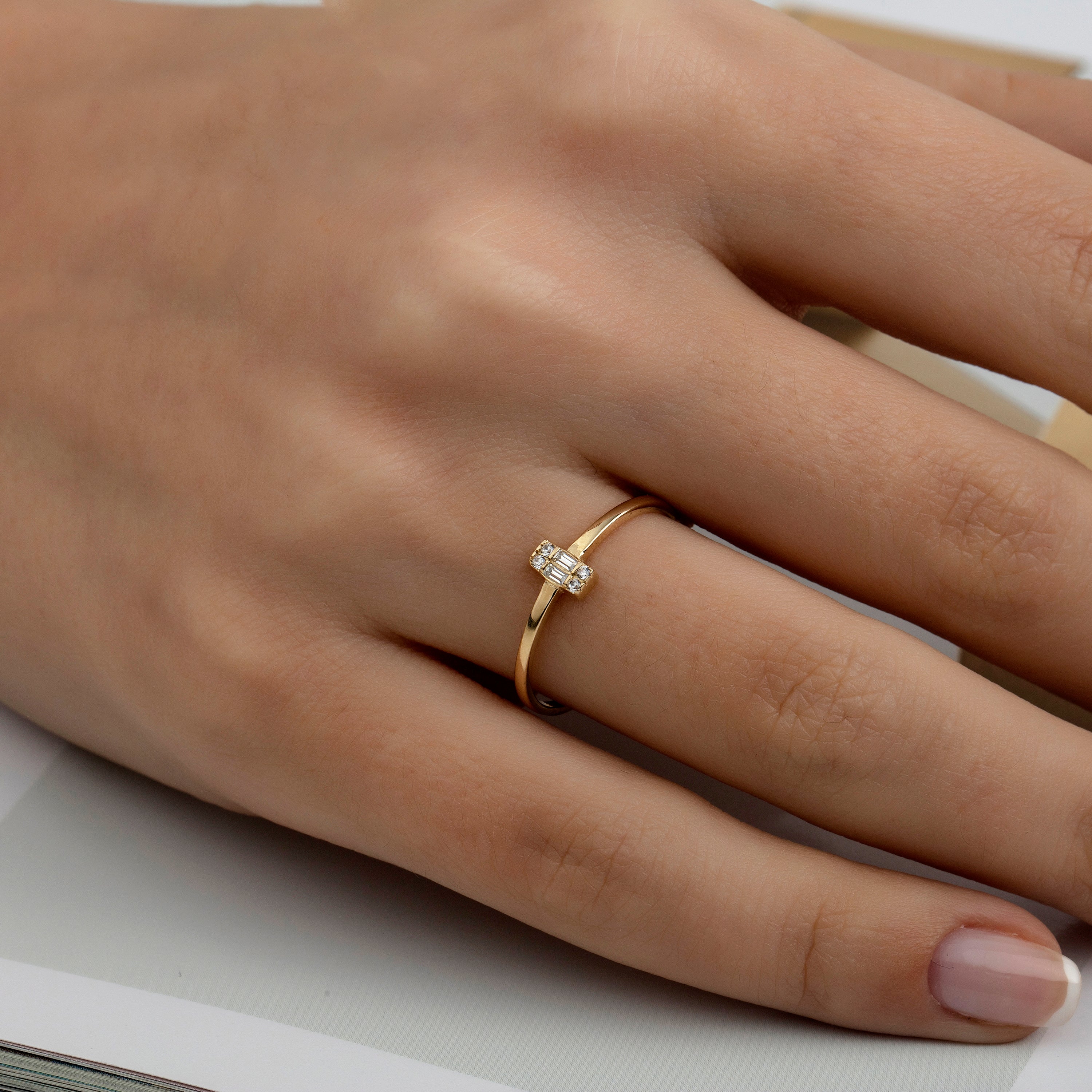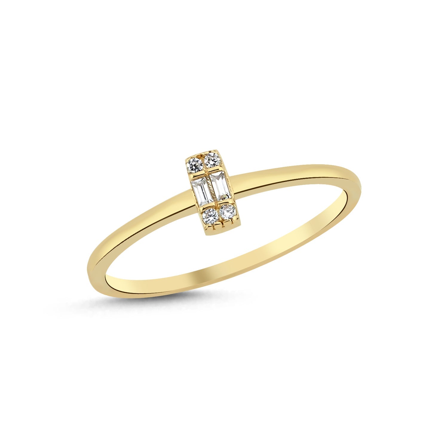 Celebrate modern elegance with this 14K gold double baguette stackable ring. The sleek vertical setting of baguette-cut stones flanked by round accents brings a fresh, architectural touch to your everyday style.